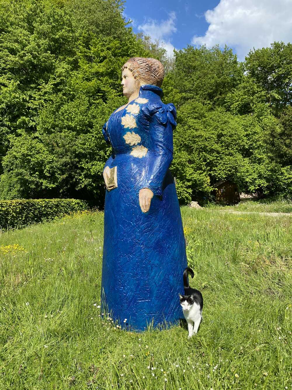 Auf dem Weg zur Sophienquelle in Grünsberg bei Burgthann/Mittelfranken liegt der Himmelgarten von Burg Grünsberg. Die Anlage kann betreten um werden und das Leben der Bienen hautnah mitzuerleben. Bei Nachfrage bin ich da, um einen Blick in den Bauch der Dottoressa zu gewähren. Der Kunstschwarm bewohnt seit 30. Juni 2021. Die Betreuung mit allen Raffinessen der Bienenhaltung wird derzeit von mir gewährleistet.