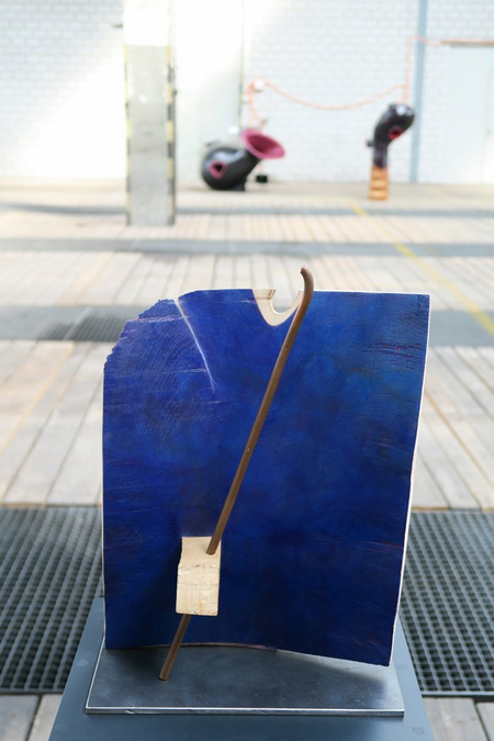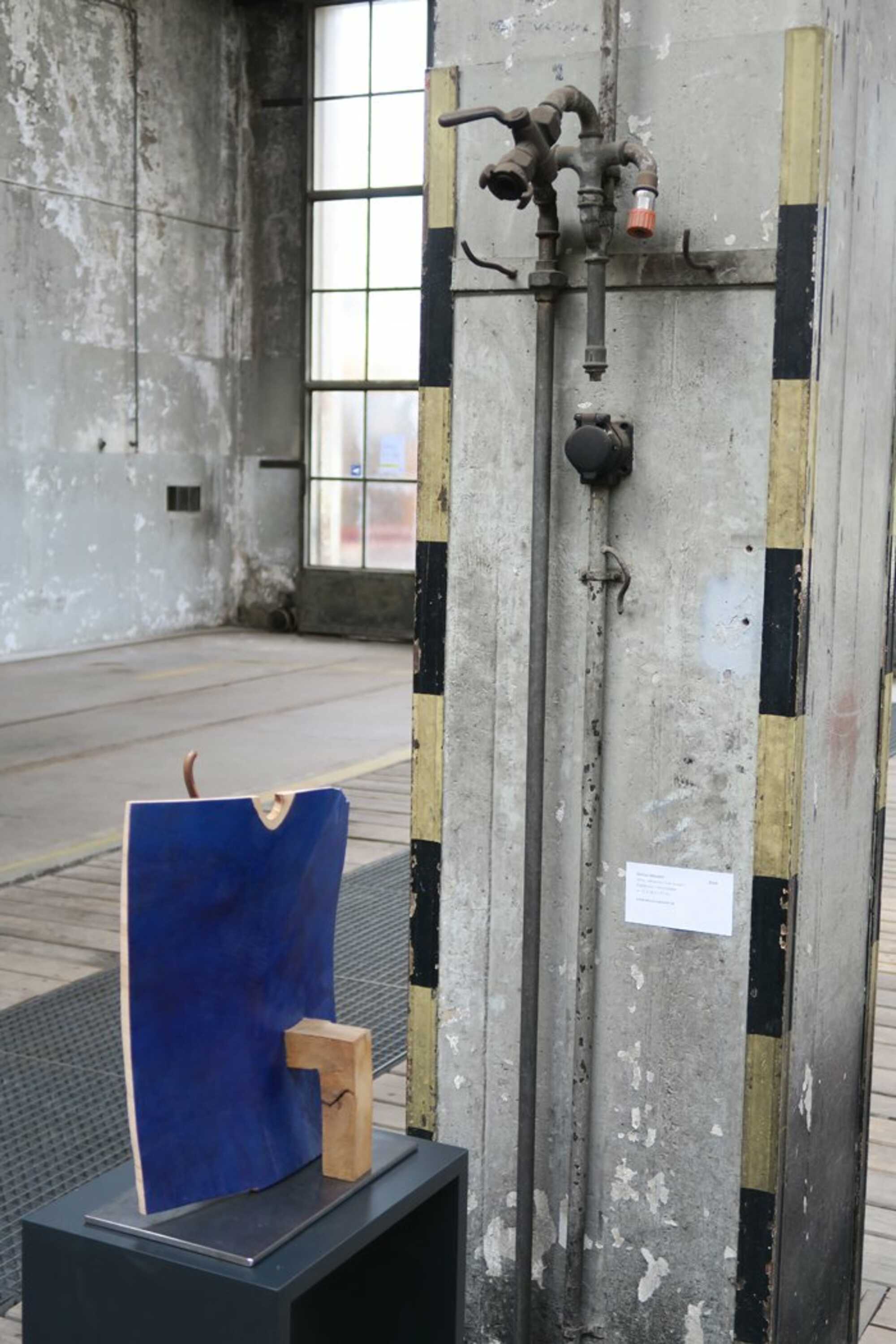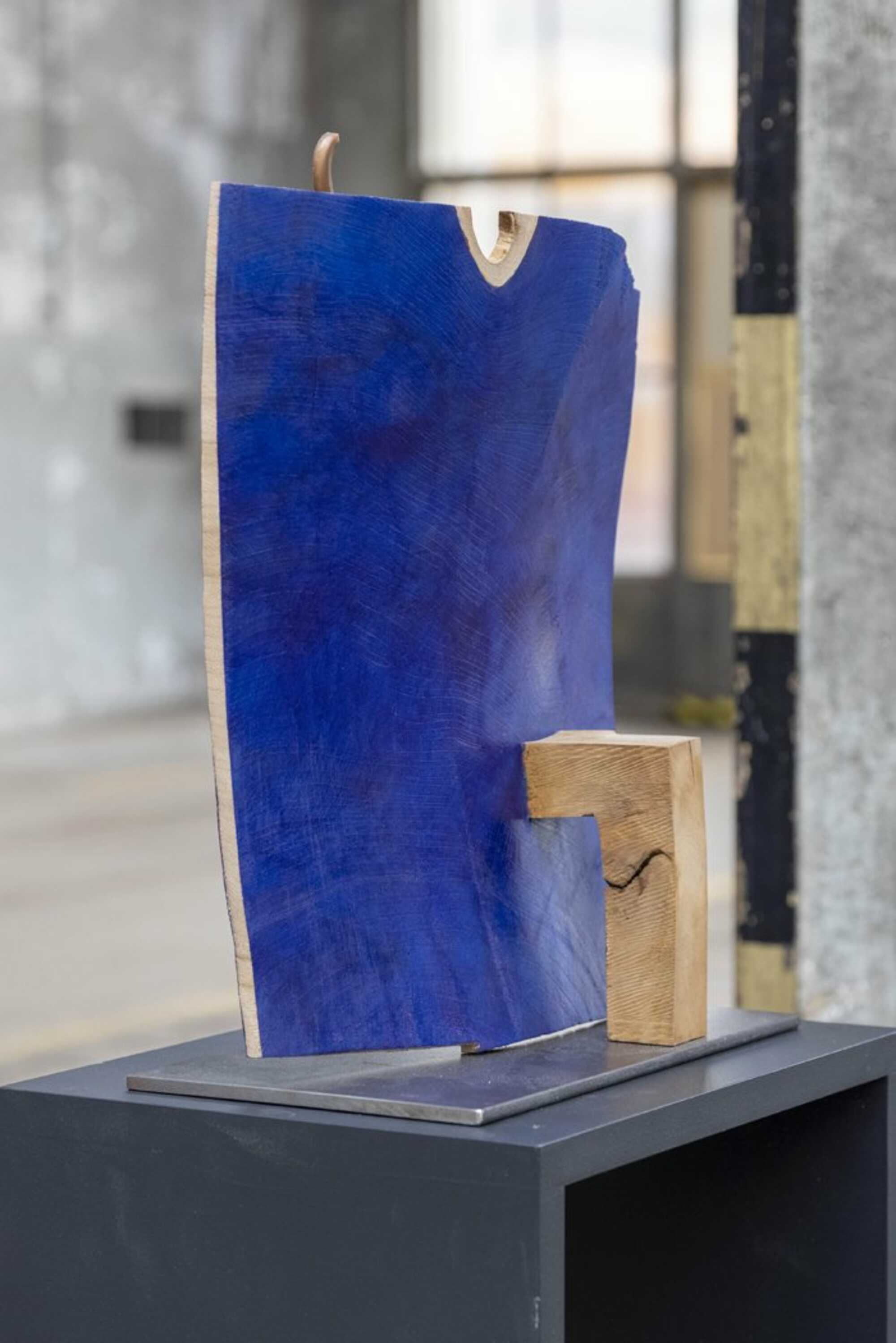 Ulmenholz mit Kupferstab; ultramarinblaue Lasur