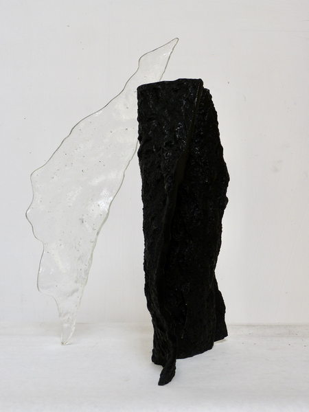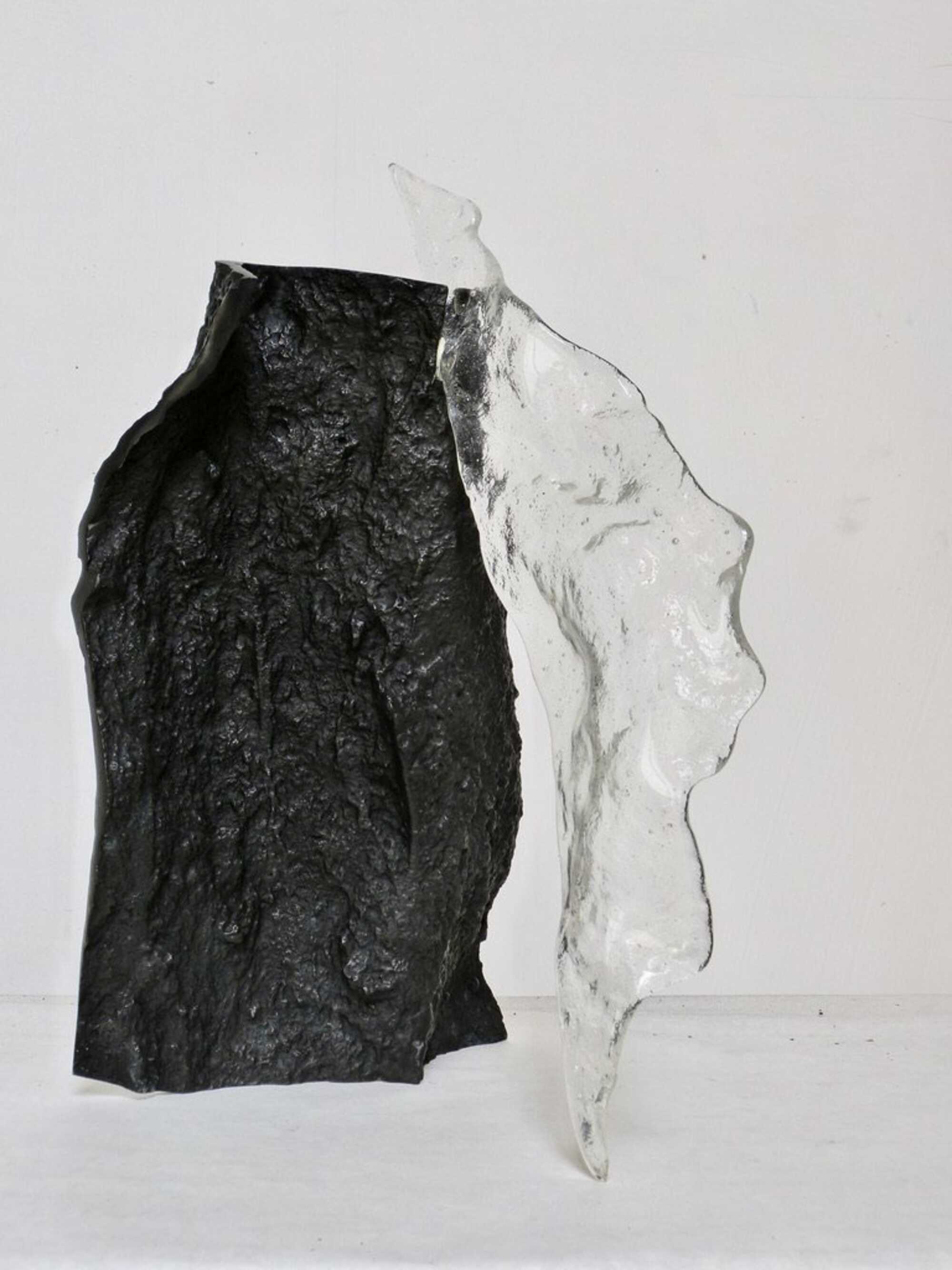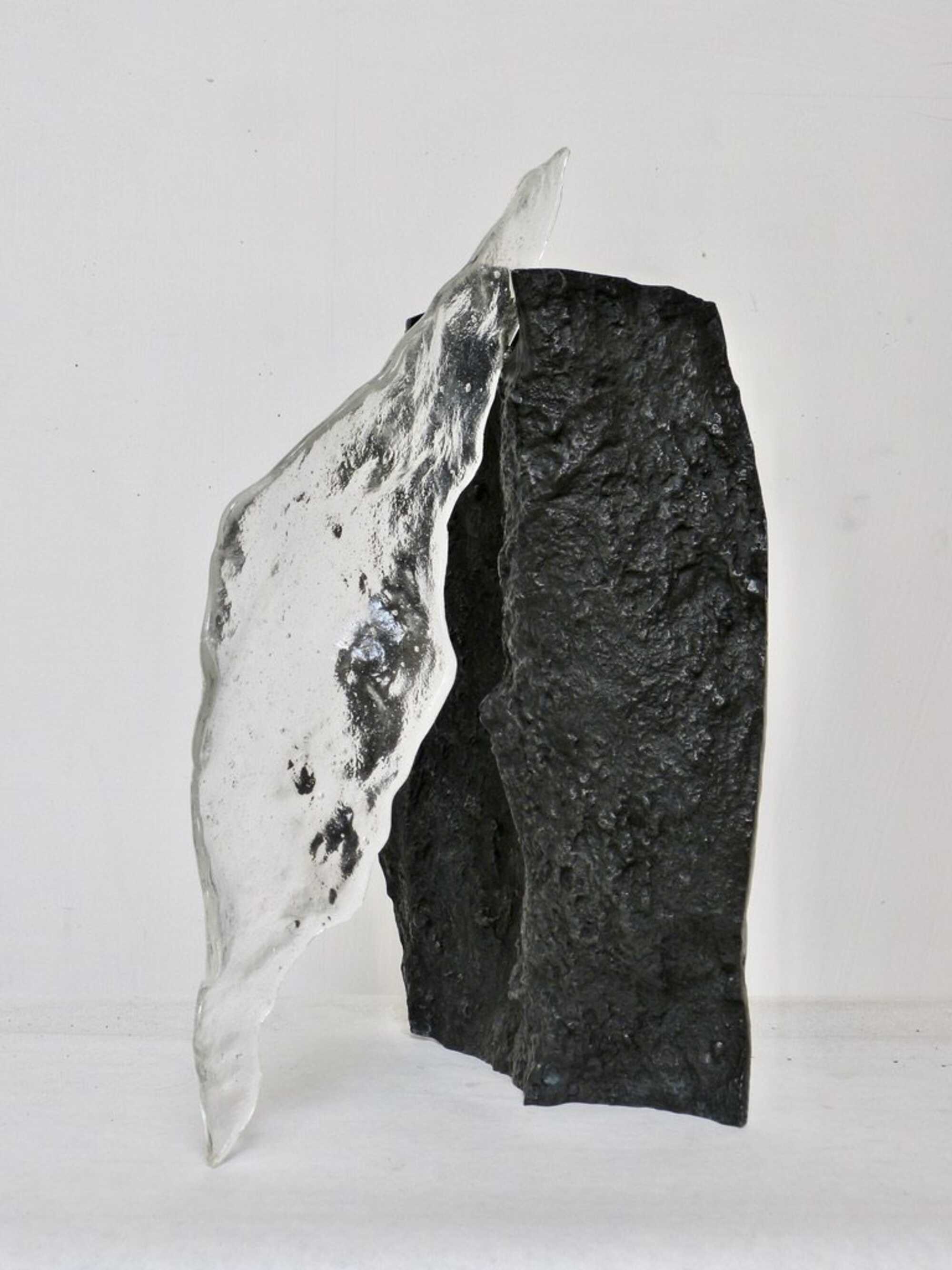 negative/positive imprints of the walls of Roman Catacombs, cast in bronze and in Murano glass. the delicate transparent glass trespasses/penetrates the sturdy bronze. opposites melt together, become one.