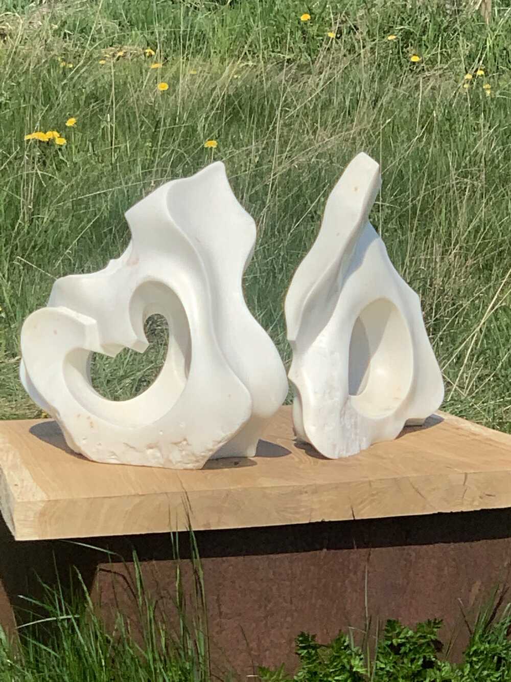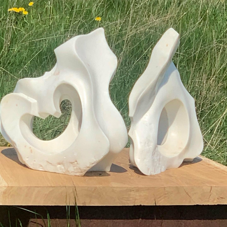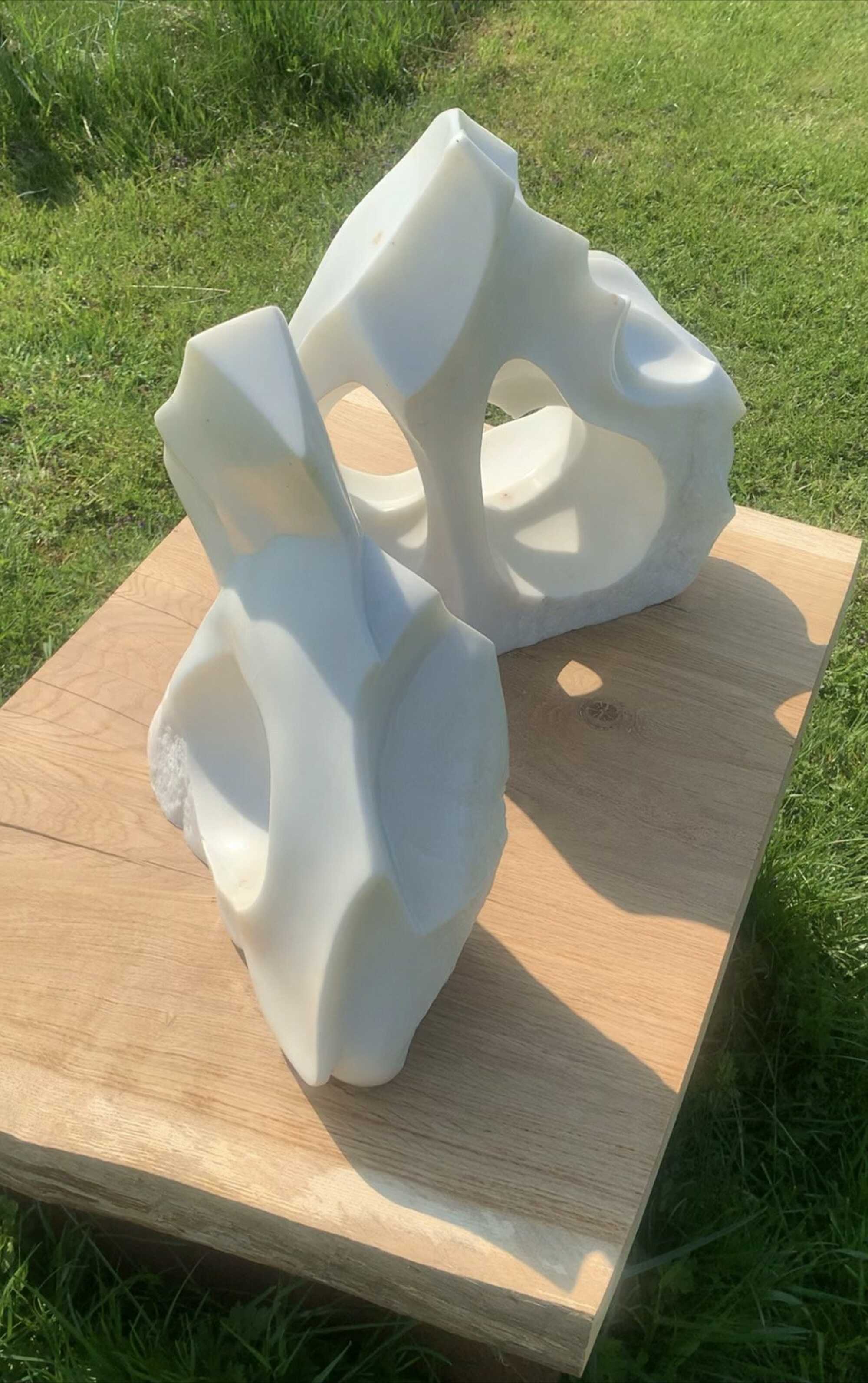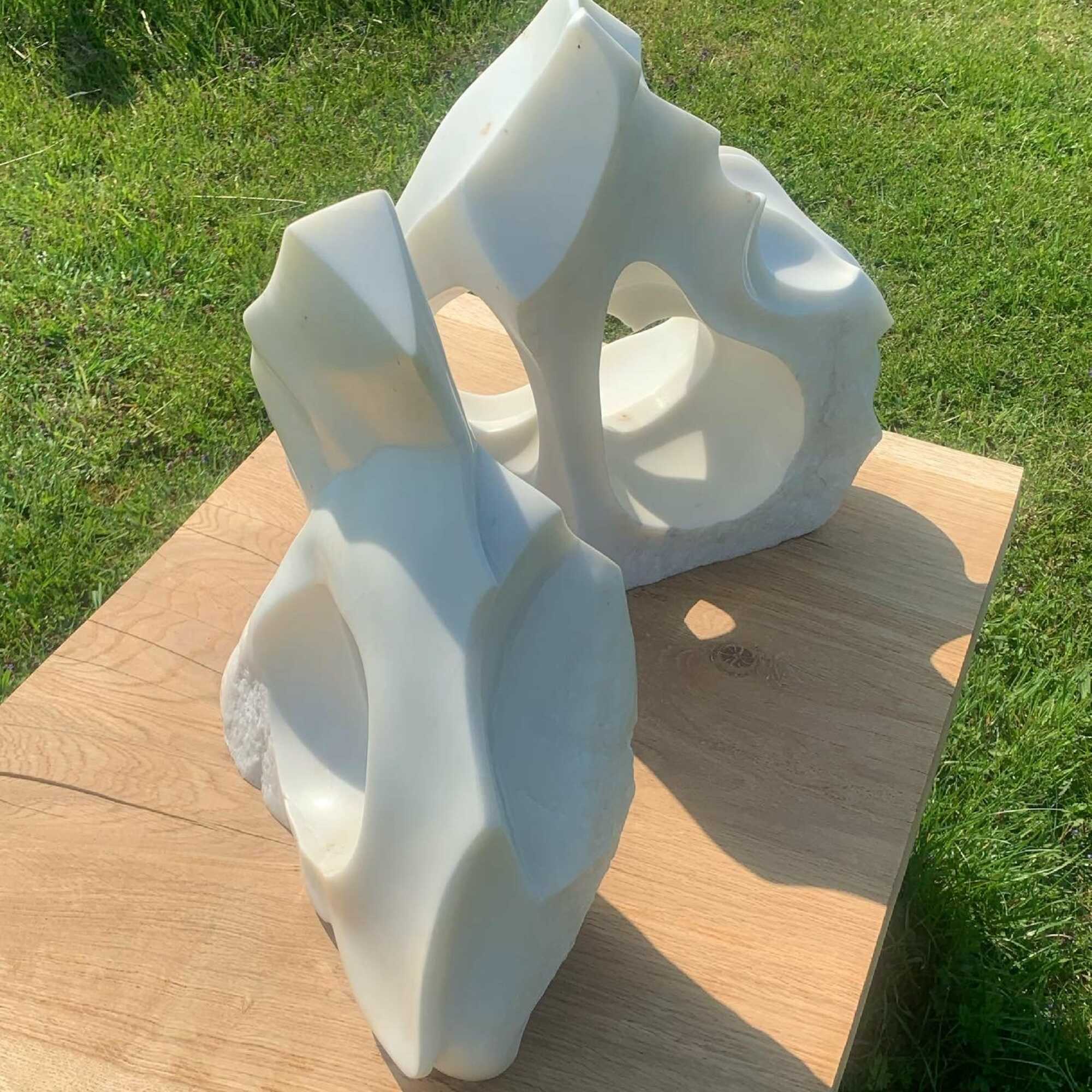 Two parts of one broken piece of Staturio marble found buried in the sand of a Danish beach. Finding the relationships and connections between them I have brought them back together as part of a lifelong pursuit finding ways to deeply connect and relate. to myself, to others, to the world.