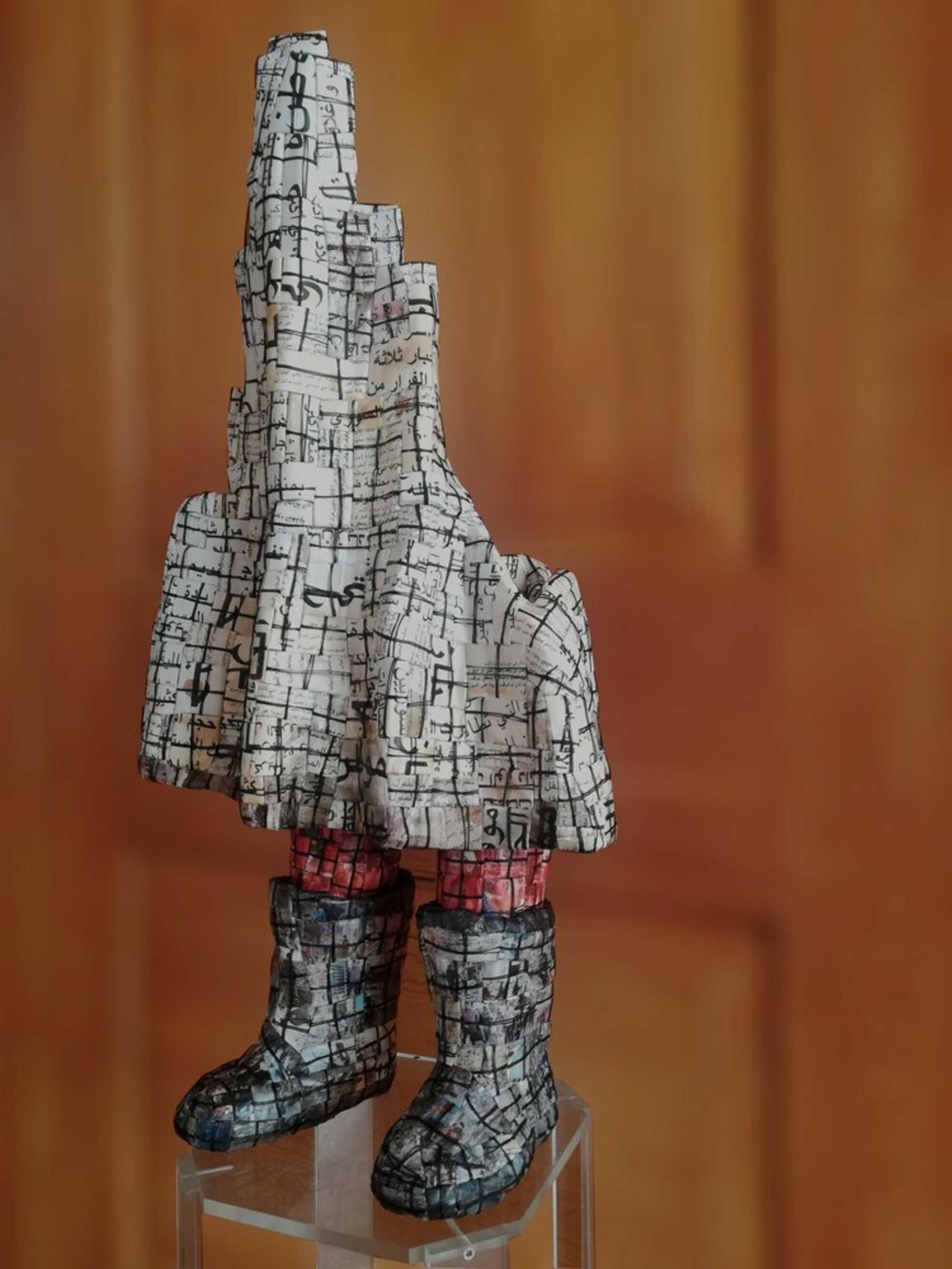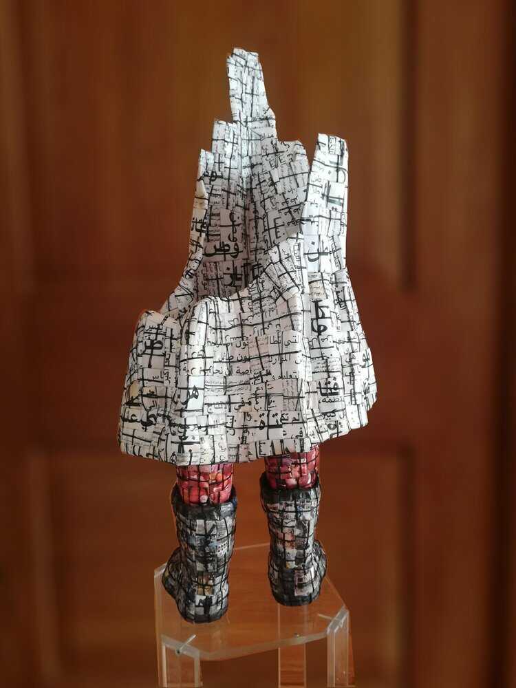 The sculpture Raja ans “Hayat” are part of the series “Language as Home” in which the artist explores how the different languages we come into contact during our life influence our own identity and self-perception. The movement of people from one home to another for different purposes, such as conflicts, natural disasters, employment or education, effects the way we relate to our mother tongue, which is often like the skin, unconditionally present and so easily injured.