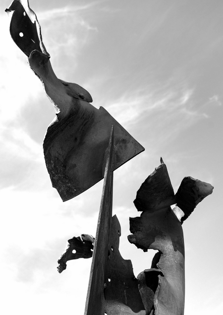 Geborstene Stahlplatten 10 mm, geschweißt, roh oxydiert.