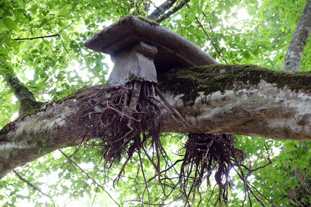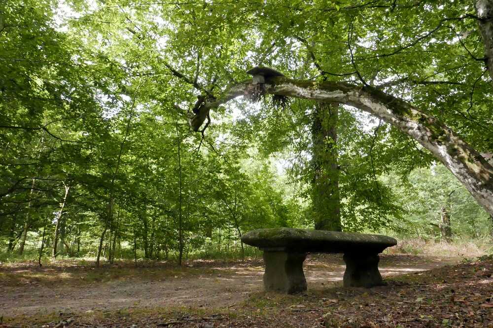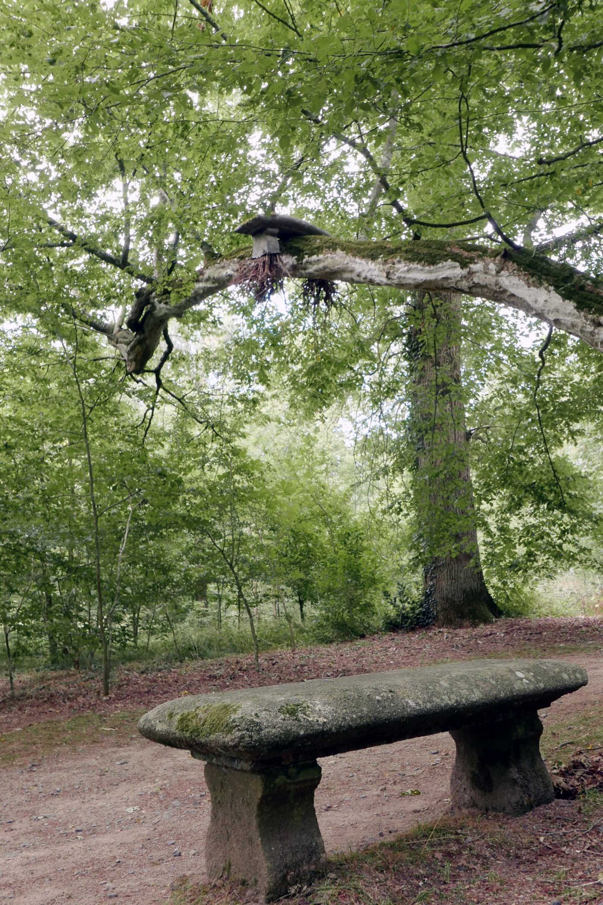 Site: old stone bench under a bended tree