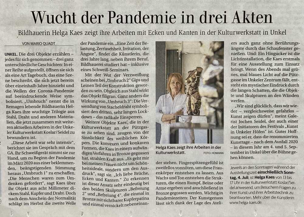 Als Objekte zeige ich meine Reihe UMBRUCH. Diese Arbeiten sind in der Pandemie entstanden und spiegeln meine Wahrnehmung dieser Zeit wider.