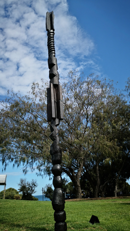 The “DOUBTING COLUMN” as AXIS MUNDI represents stability as well as the magic we need to live, both: magic and stability. Trunks of oaks carved with geometric shapes: spirals, cylinders, cubes looking for harmony in the volumetric bodies... Trunks of oaks for firewood blackened, charred, superimposed on a fragile balance, form a column of 400 cm height Remains of magical trees, oaks, forests of Mallorca, the Tramuntana. And all of a sudden Australia burns. The bronze cast with fire becomes a column of burnt logs. Ancestral techniques, liquid metal penetrates. This work has acquired a symbolic character, brutal due to recent events. (Unintentionally) It's a representation of GLOBAL WARMING. The worst nightmares of destruction have transcended our reality. Burning forests, scorched earth, dead animals With this sculpture I want to say ENOUGH