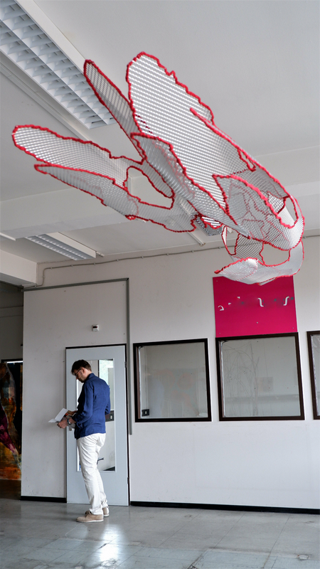 The work seems to be appropriate to a site, a former Telekom workshop. It benefits from the architectural bleakness of the site. The facelessness of the industrial space connected naturally with the ethical theories denying a face and a gaze to animals. For a French philosopher Emmanuel Levinas, a human face is the only one able of moral appeal. Playing a personal experience off against anthropocentric theories, the artist arranges the objects in liminal spaces, presses them into corners and doors.