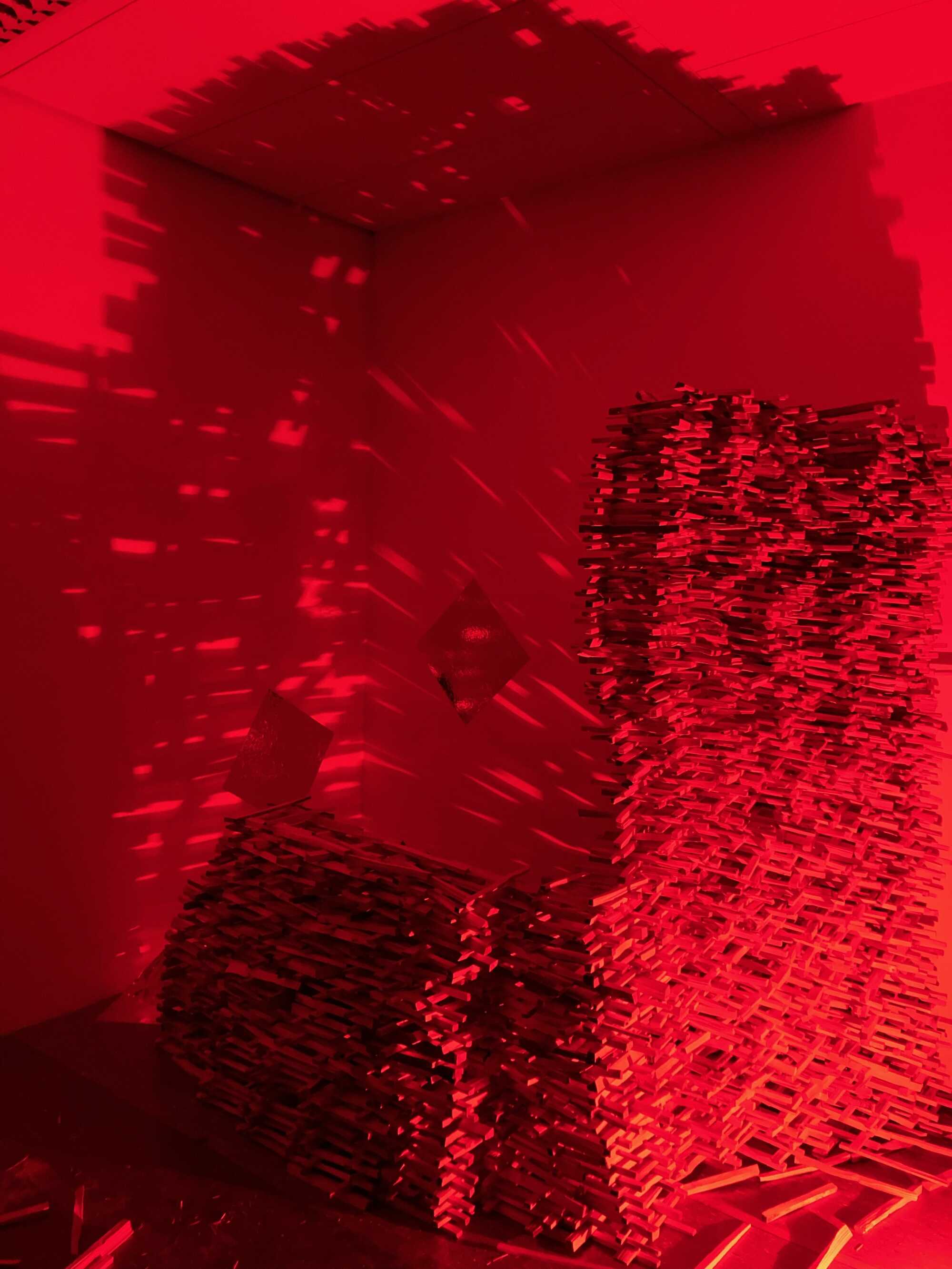 im Aufbau befindende Holz_Klang_Raumskulptur.