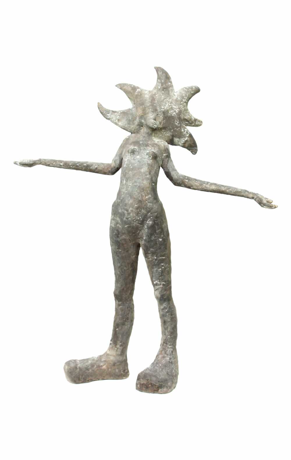 Der Rumpf mit willensstarker Wirbelsäule verbindet in ästhetischer Weise die feste Materie Erde mit dem alles umfassenden Univerum.
