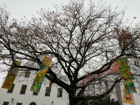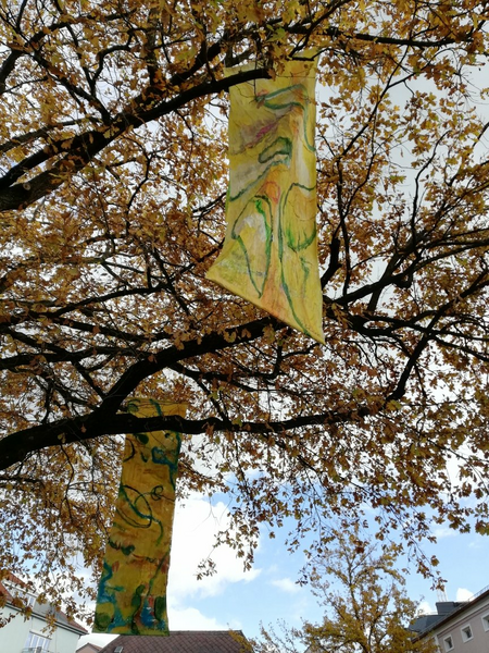 KunstMeile Aichach. Eiche am Schlossplatz. Ein Projekt gewidmet der Vergänglichkeit im Rhythmus der Natur. Von September 2020 bis Januar 2021