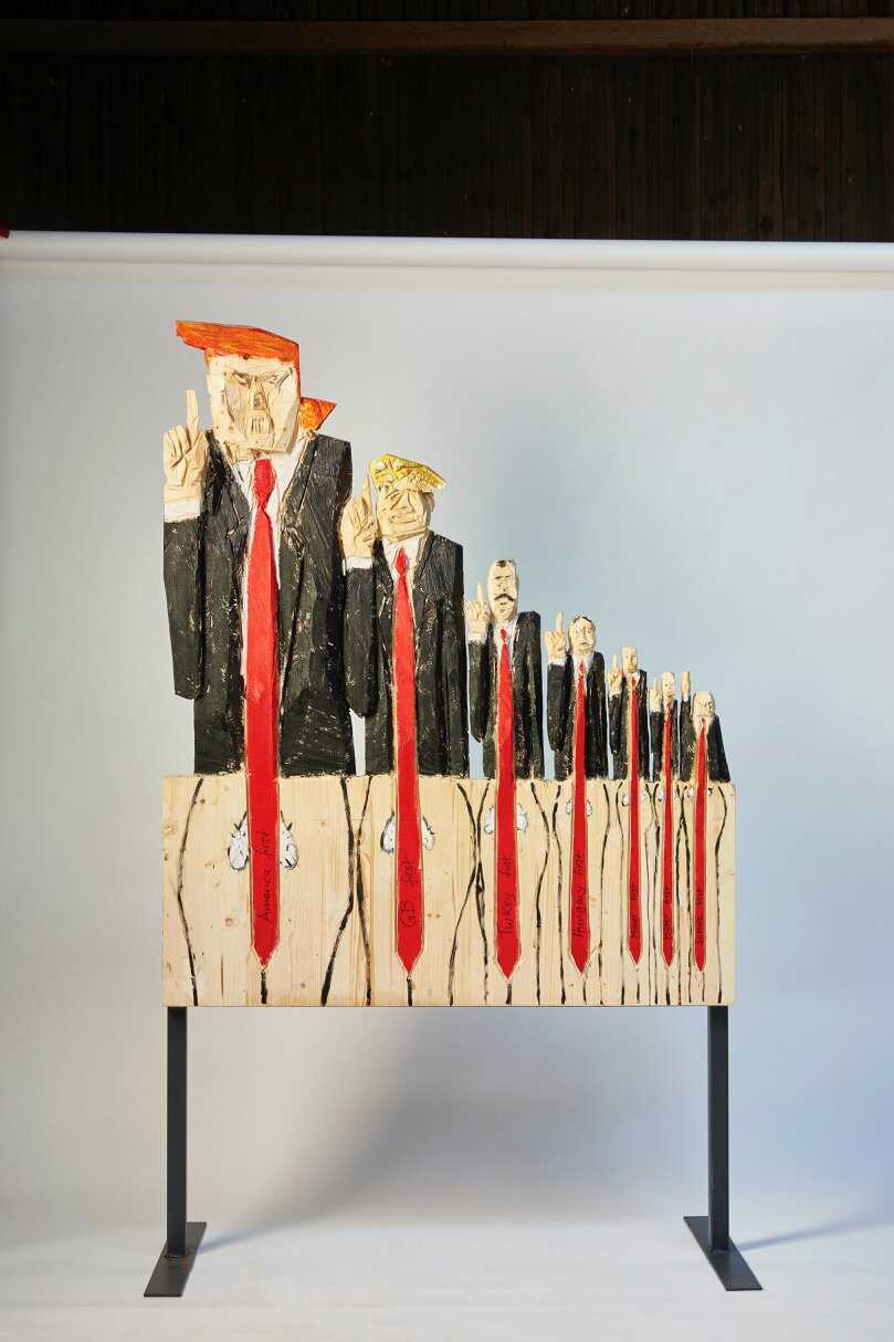 Holzrelief, Beitrag zur Ausstellungsreihe "Lasst die Volksseele kochen!"