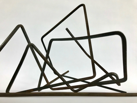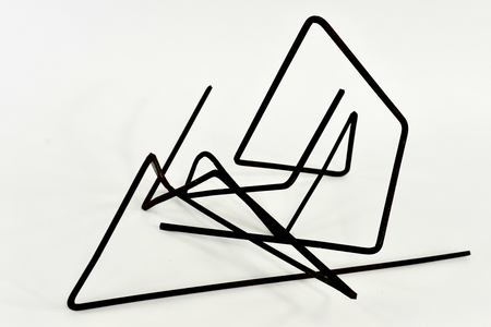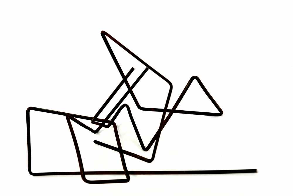 Durch Biegen der Stahlstäbe entstehen Raumlinien, zwei Raumlinien ergeben ein Ganzes. Ein Spiel mit Raum und Dimension.
