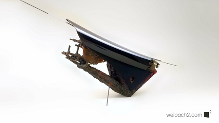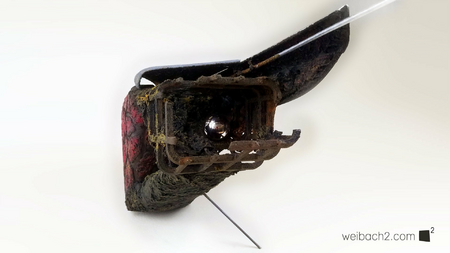 The opening with the bare pipes is the still recent point of separation of the exiting partner. The reflective sphere, the ego of the abandoned.
