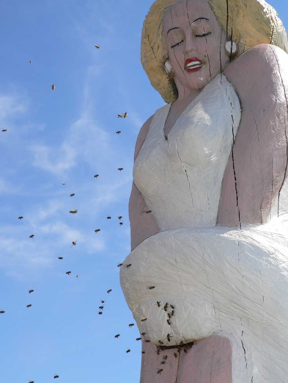 Figurenbeute der Diva, der 'hottest bee ever' aus der Szene in 'Manche mögen heiß'. Bei den Skulpturen für Bienen sind traditionell die Fluglöcher unterhalb des Bauchnabels. Diese Bienenhäuser folgen dem fruchtbarkeitszauber vergangener Zeiten und machen auf charmant erotische Art darauf aufmerksam, daß die Bienen Fruchtbarkeit bringen.