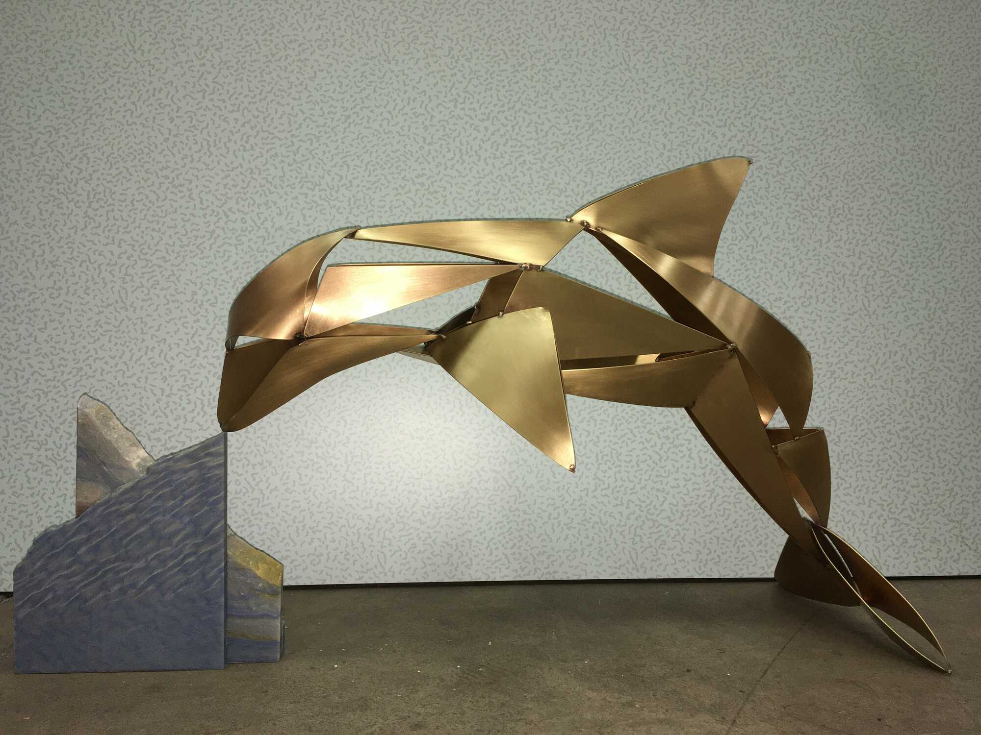 Dolphin made of sheet of bronze on Azul Macaubas.