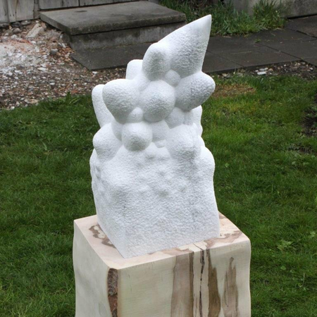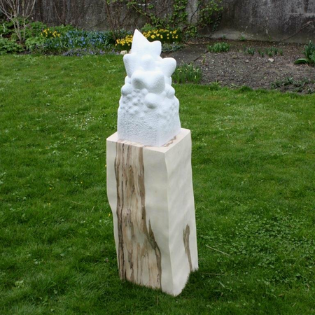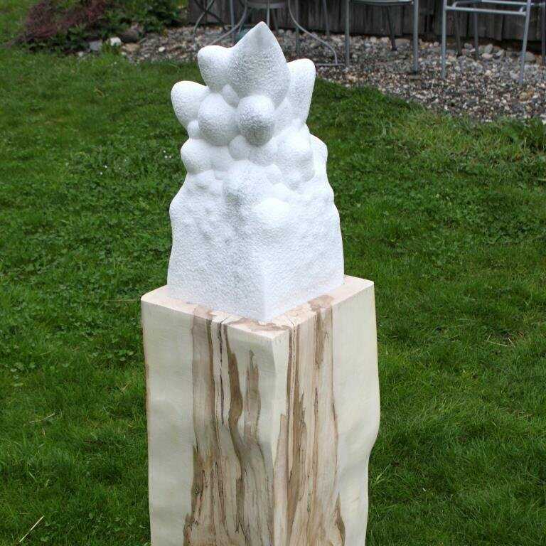 Von Hand aus einem Stück Marmor heraus gehauen, auf einem Ahornsockel