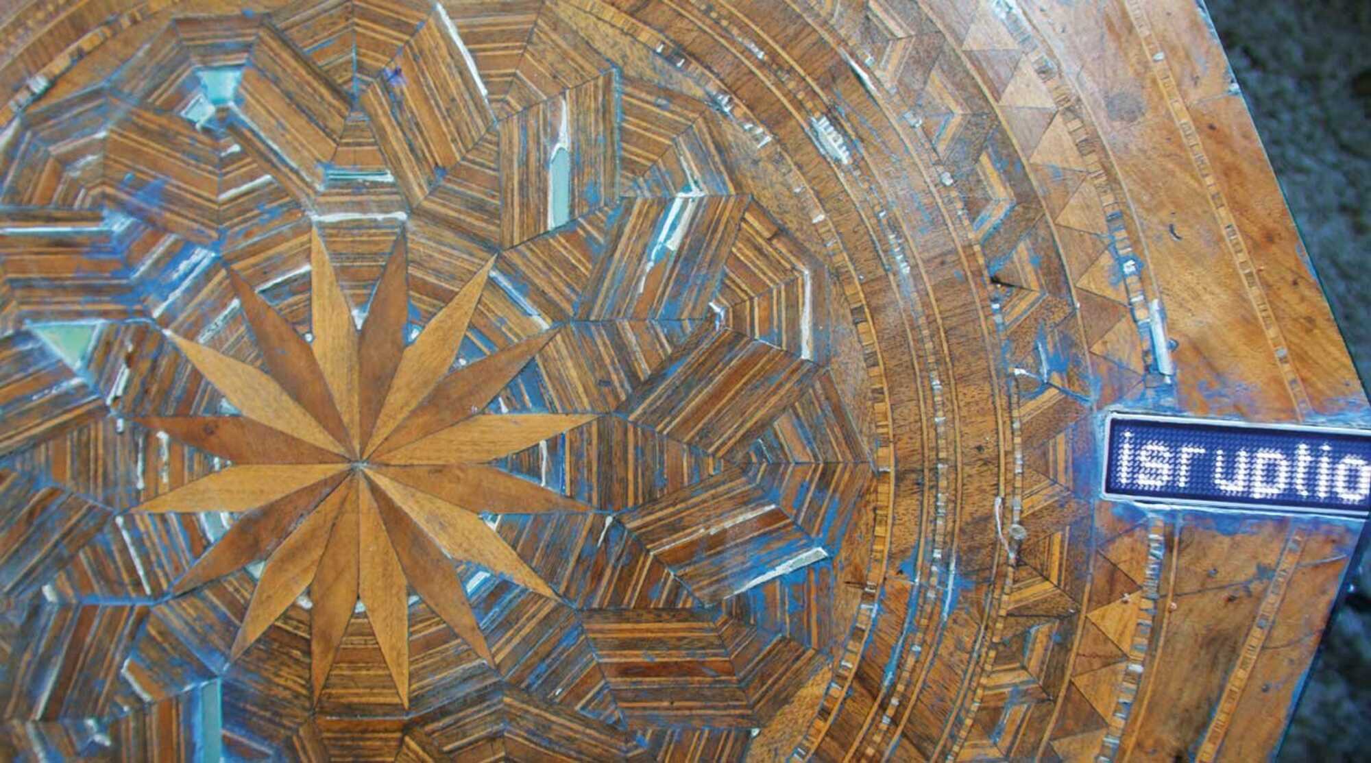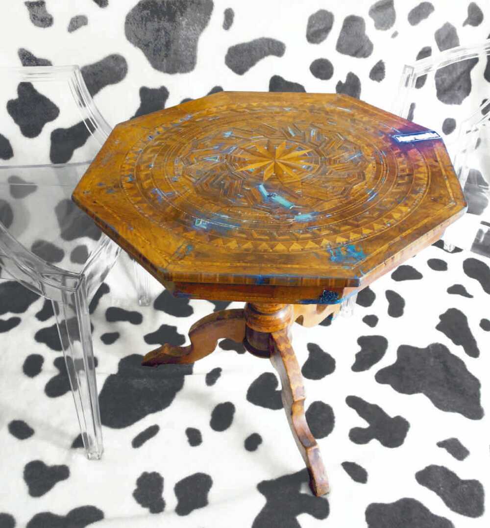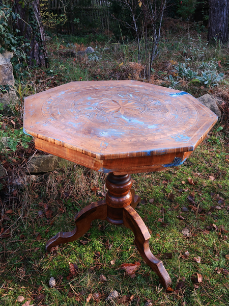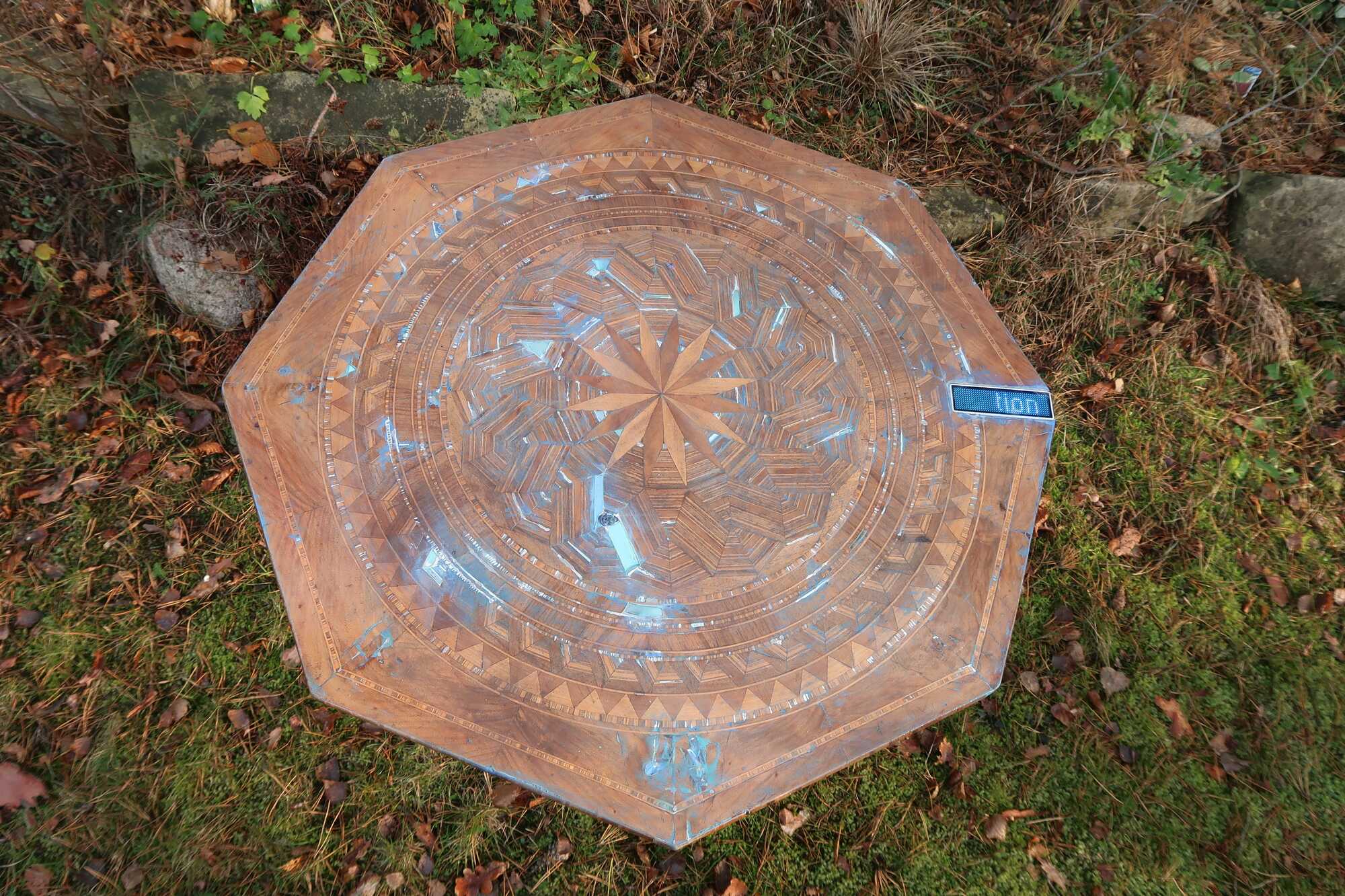 Antique Biedermeier table with inlays from a picture CD and LED module