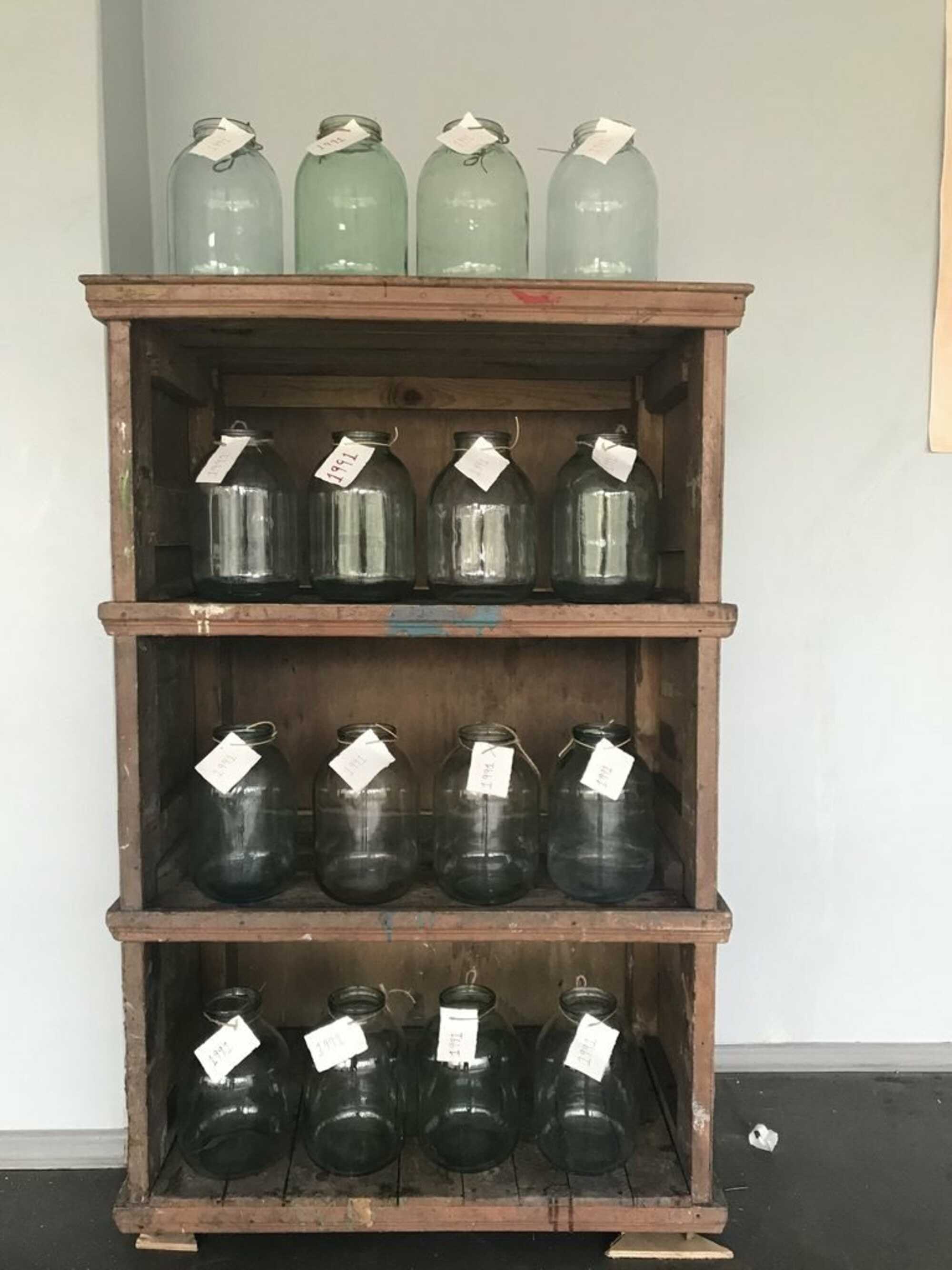 ‘Empty Yet Full’/1991, 3D Installation, Glass Jars and Wooden Shelf