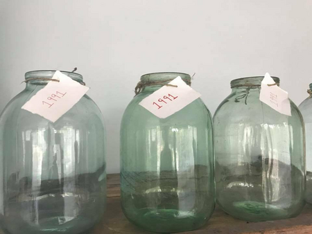 Glass pickle Jars are cleaned and ready to be filled again. Just after 1991 Independence, Ukraine is cleansing itself of its Soviet historical connections and is on the cusp of creating a unique Ukrainian identity. Though politically there might be disconnections, people, relationships, memories and history know no boundaries and borders. The jars might seem empty but they contain dust…memories of the past and connections that can never truly be erased.