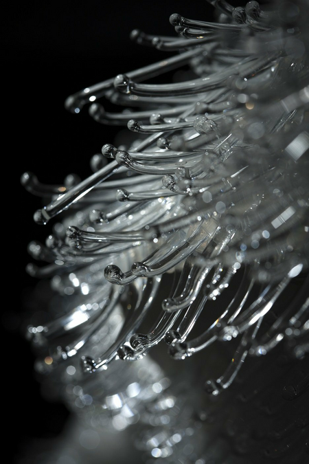 borosilicate glass, handmade coat, roccaille glassbeads, redecorated vintage chair, flamework, cold assembly