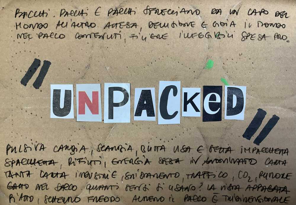„Pakete und nochmals Pakete, von einem Ende der Welt zum anderen. Warten, erwarten. Enttäuschung oder Freude. Die Welt der Pakete, Inhalte. Verbrämte Herkunft, impulsiv Einkauf. Tauschen, Umtauschen, Wegwerfen. Müll, Energie, Anonymeinkauf, Papier viel Papier. Industrie, Ausbeutung, Logistik, Verkehr, Lärm. Die Katze im Sack. Wieviel Sinne werden benutzt? Bilder, Platte Bildschirmbilder. Kälte. Aber ein dreidimensionales Paket.