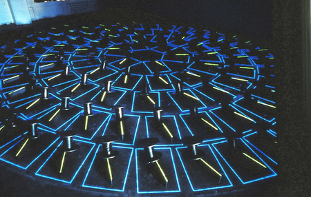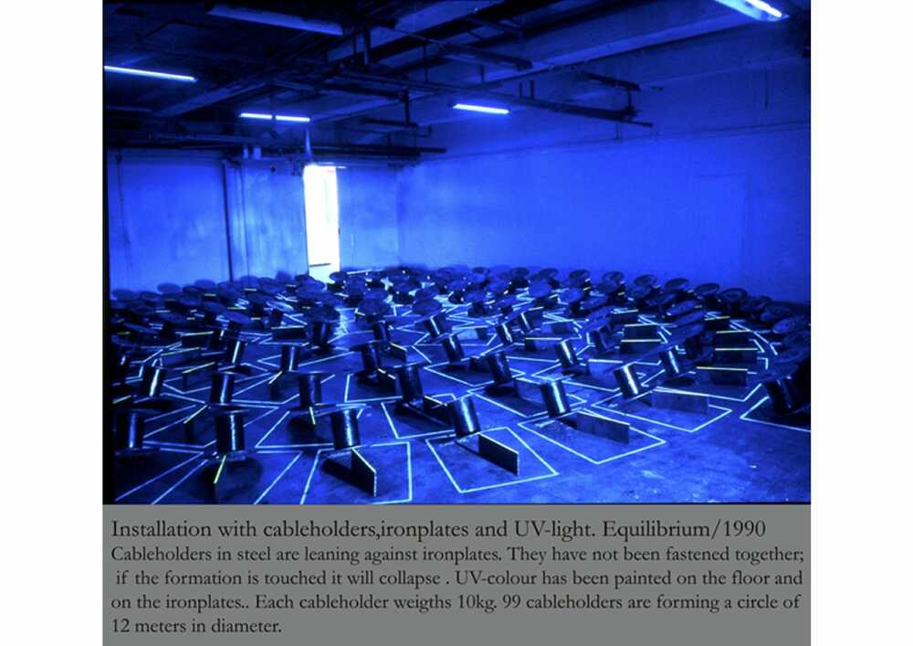 100 cableholders in steel leaning on steel-plates. The holders have not been fastened, if the formation is touched, it will collapse.