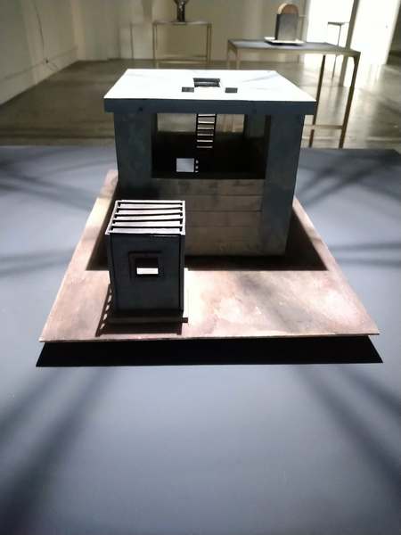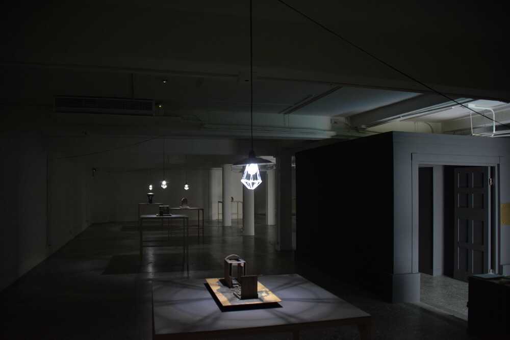 The installation comprised 8 architectural models on tables of 100 x 100 x 100cm, with each table lit by a single work light with a daylight LED bulb. The entrance into the space was through a structure based on official buildings, and drawing on the previous project Embassy.