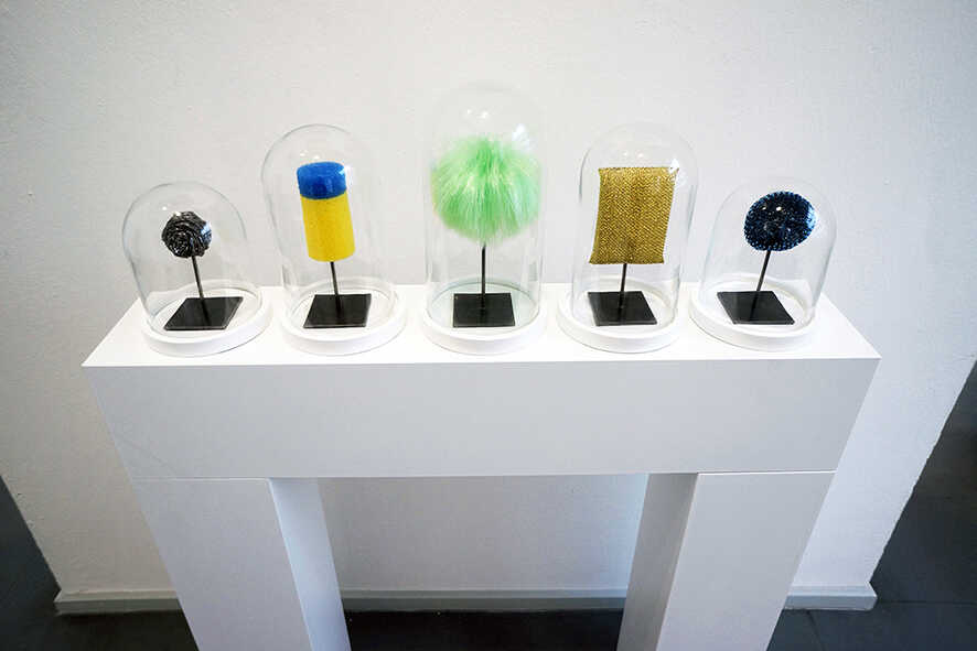 Putzutensilien werden durch die Glasstürze zu wertvollen Devotionalien