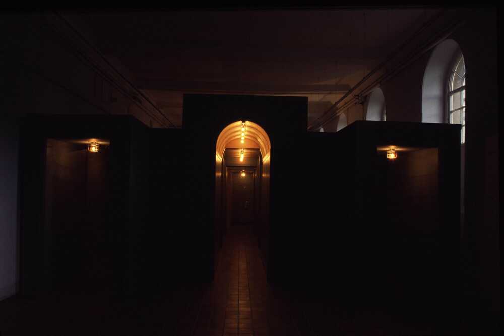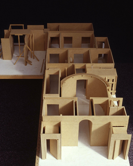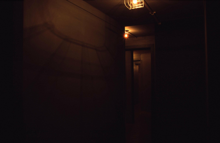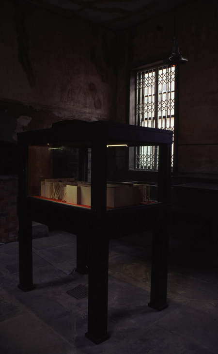 Site-specific installation in a building of the Natural History Museum at Wollaton Hall, Nottingham. The work replicated the manner in which museums are monumental structures that control the navigation of the interior spaces, and thereby control the narrative of their holdings. Thw work also referenced ideas of ruined museums, especially the ruins encountered in the HG Wells Story "The Time Machine"