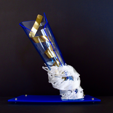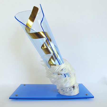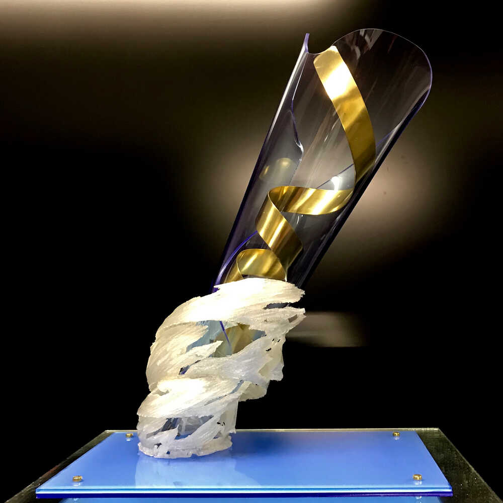 The 3D printed piece of the sculpture looks like a flash-frozen whirl of water. This technology in that case is unrivalled and allows me to capture the very moment in which the water flash-freezes and the material used gives this particular effect of translucence and weightlessness I wanted to reach.