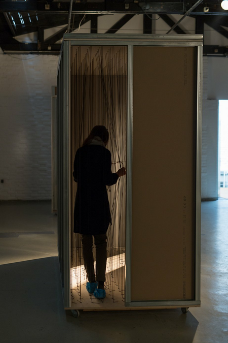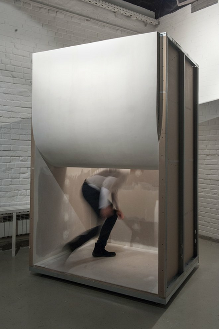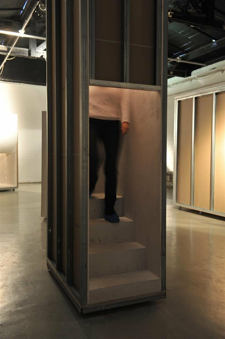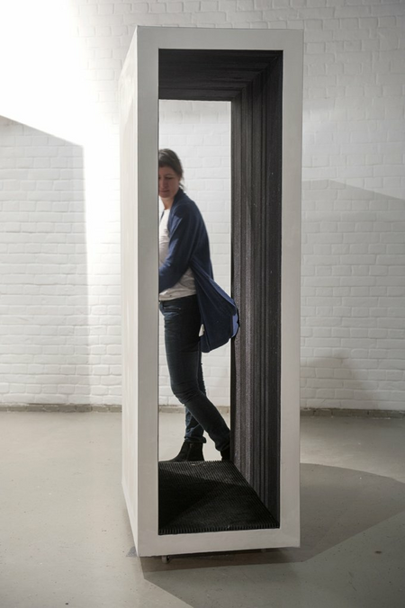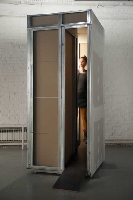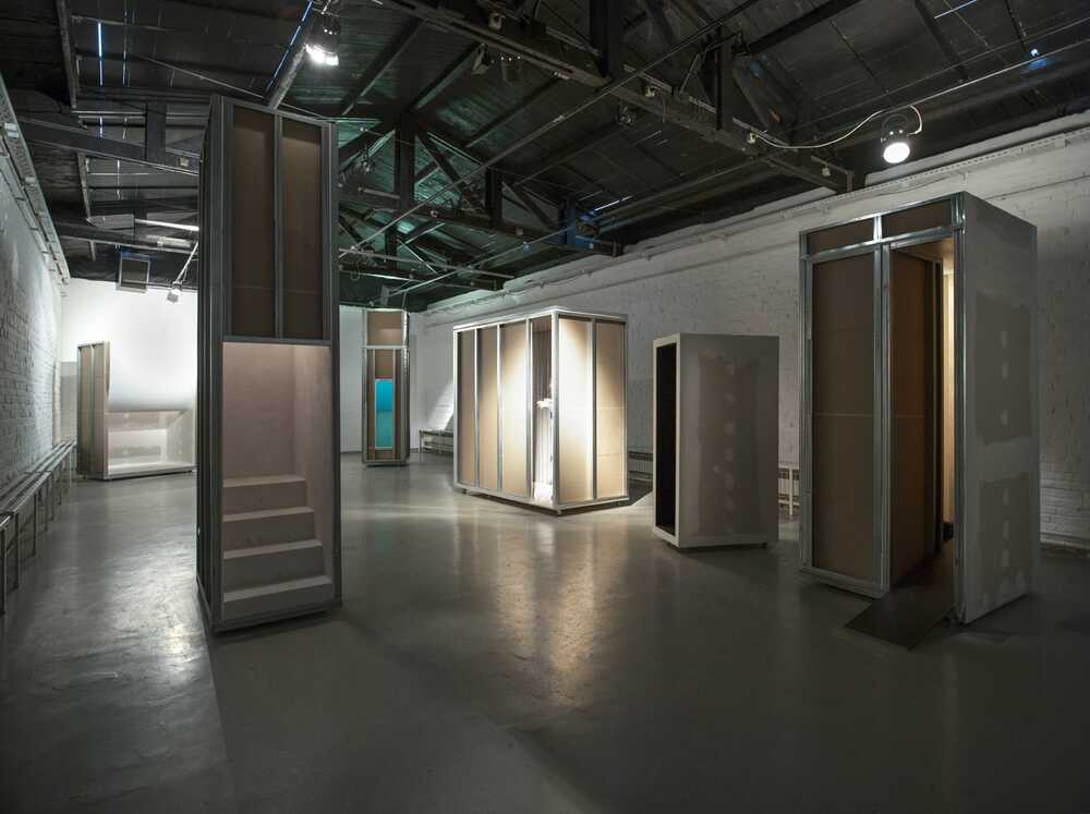 interactive sculptural installation by Marina Bauer, 6 gypsum board construction boxes