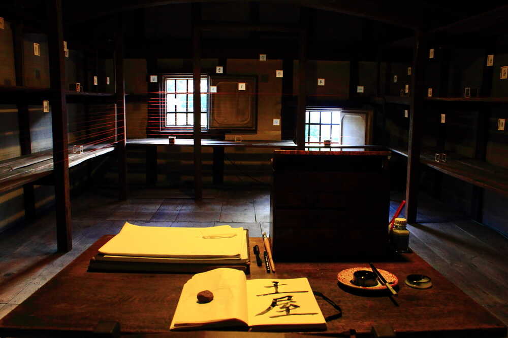 /Daily life drawings, compressed nature pieces, red thread, written book and study space.