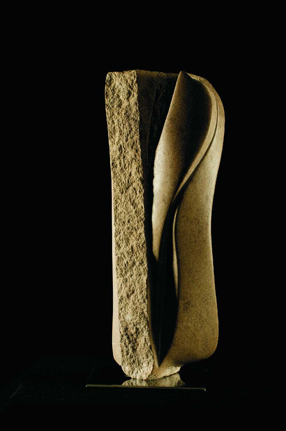 Stele aus ThĂĽster Kalkstein, teilpoliert, mit Edelstahlhalter