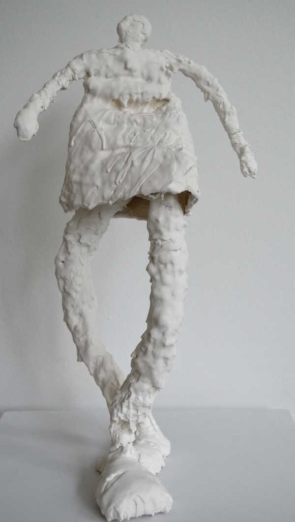 Seen from a low perspective, this woman figure shows herself in a confident pose.