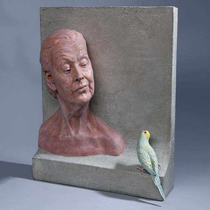 In this sculpture my mother has "a bird", but in fact it is my bird, the magnificent budgie called "Manfred". In fact our whole family has "a bird"- and not just one. Manfred has his own bird - GĂĽnther. My mother mimicken Manfred and Manfred imitates my mother.