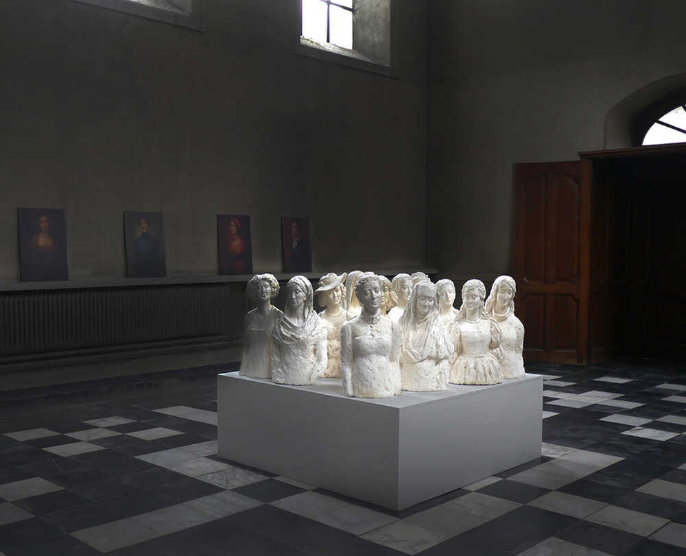 'Mouseion' installation with 12 sculptures and 24 photos
