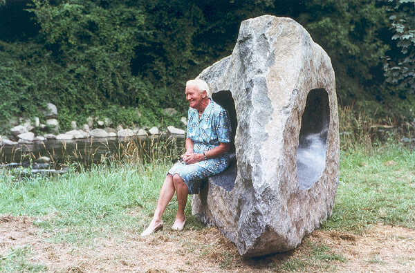 Die Arbeit entstand auf einem int. Symposium in Belgien. In den vorgefundenen Stein wurde ein Durchbruch geschaffen. Dieser ist im Gegensatz zur restlichen bruchrauhen, ockerfarbig verwitterten Oberfläche poliert, fast schwarz und glänzend. Durch die Bearbeitung des Steins kommt das verborgene Wesen des Materials zum Vorschein.