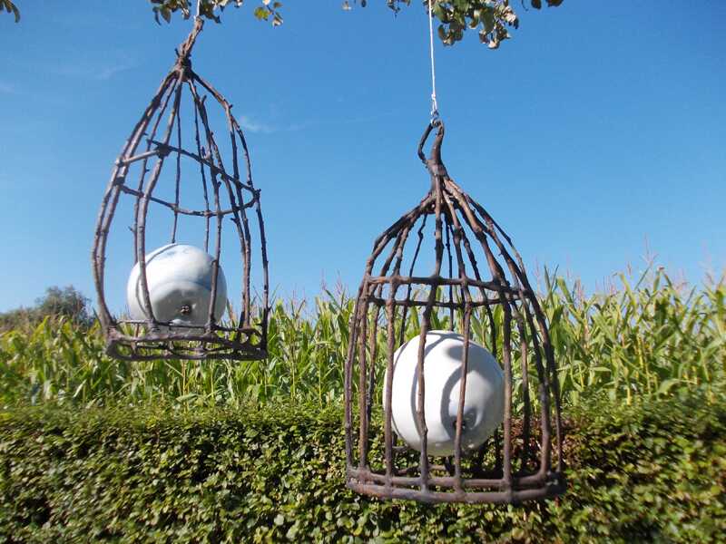wooden cages with porcelain apples
