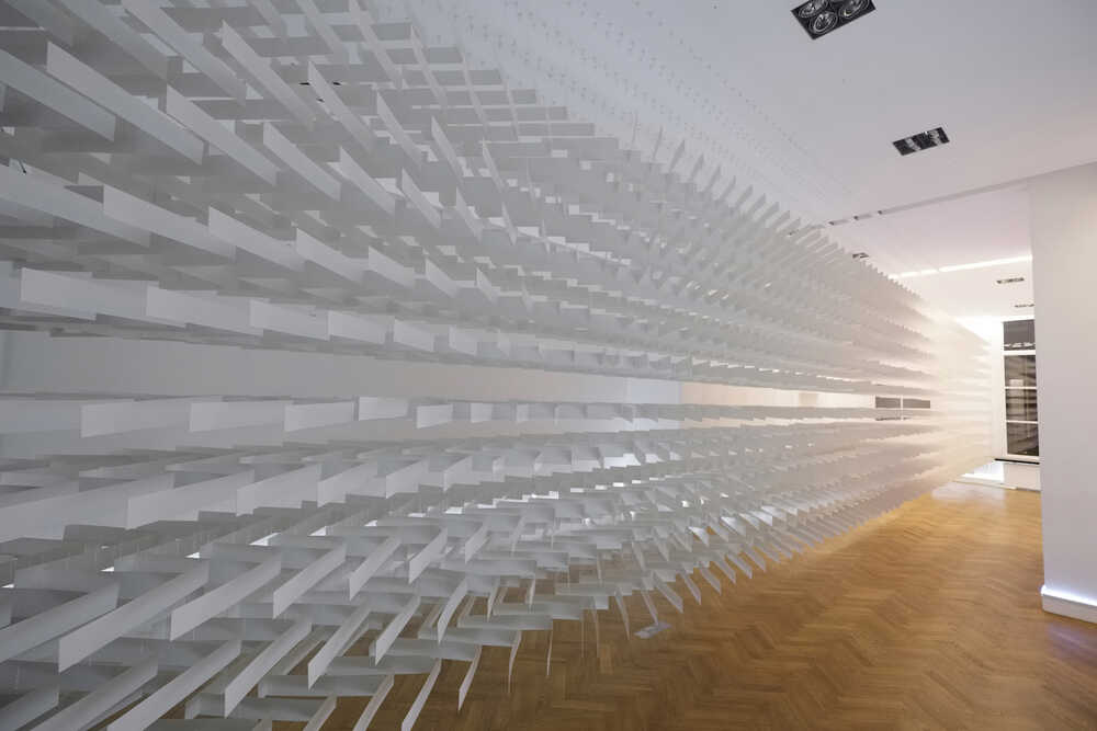 Concordia, Enschede, the Netherlands Cardboard, nylon wire, tape, LED strips.