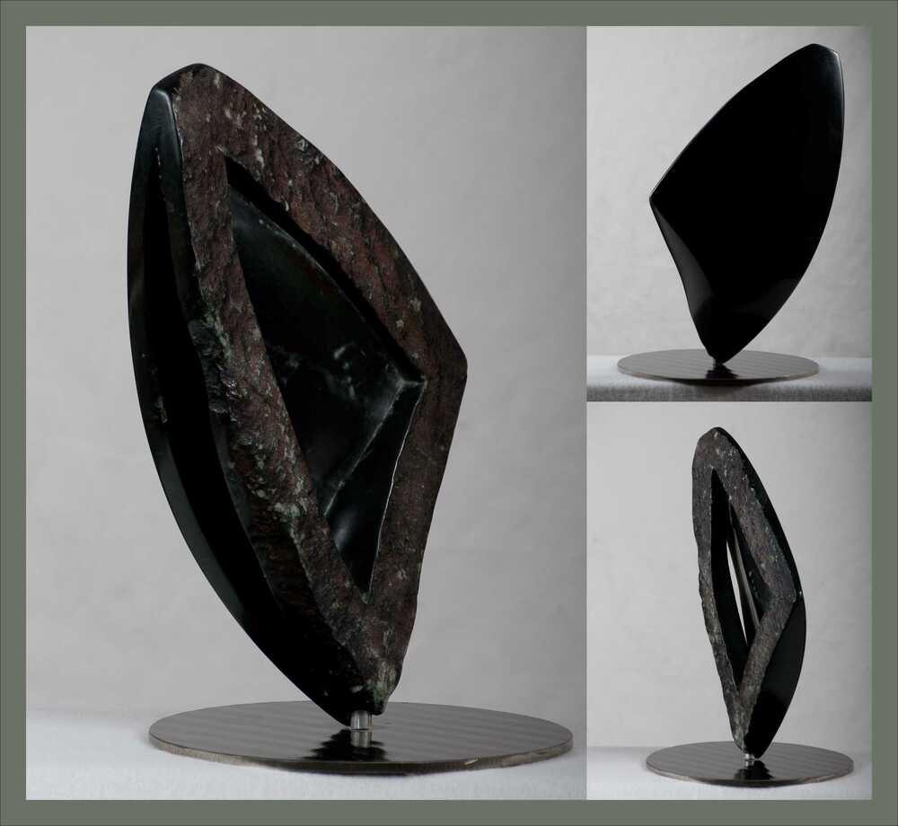 Stein (Galastone schwarz-grĂĽn, teilpoliert), auf Eisenhalter drehbar