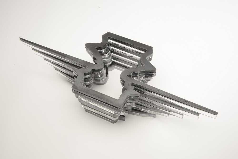 Inspired by Milan Kundera's "The unbearable lightness of being" the work is a weighty material meditation on the notions of truth, value and the nature of forces giving shape to the sketch of the individual life.Mild steel, acrylic.