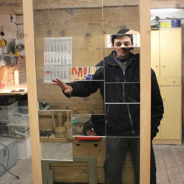Dies ist ein Spiegel mit Durchblick für verschiedenste Interaktionen.