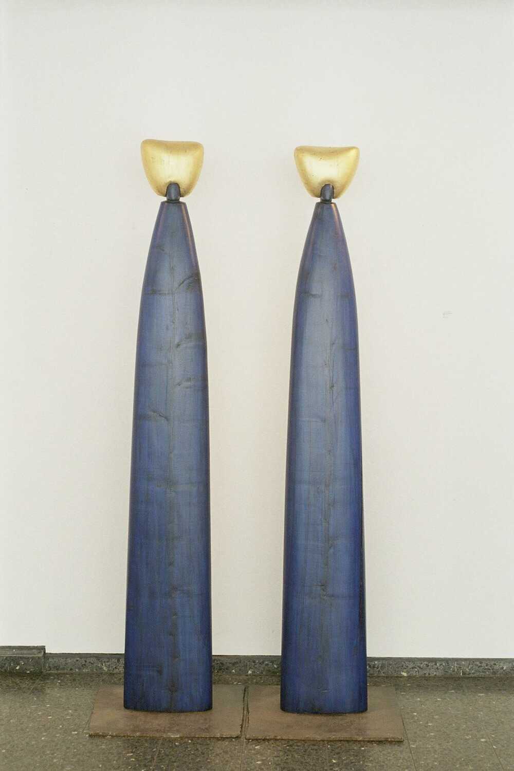 "Hohe Königinnen" Nußbaumholz, Blattgold, blau