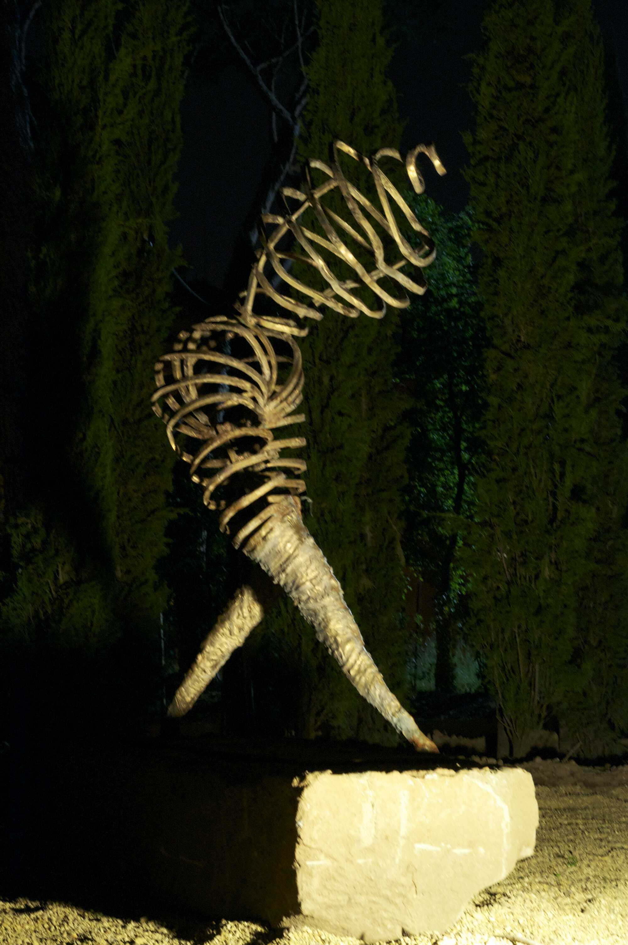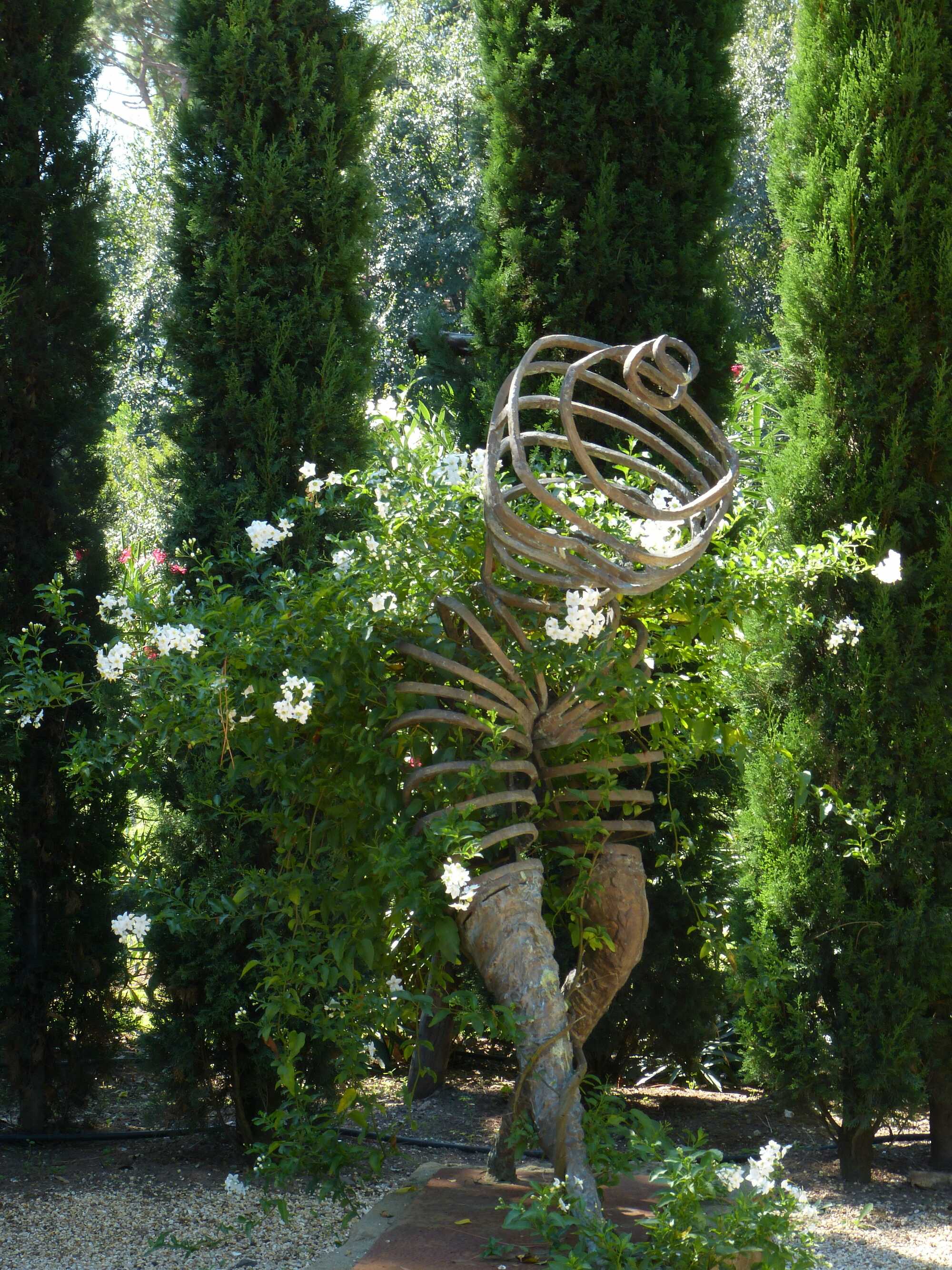 Following from Der KUSS, this piece further develops sculpture’s integration and unification with nature.The Gardener is even lighter and more transparent than ‘Der Kuss’ yet at the same time is also dynamic and powerful. The woman bends to look at the jasmine which grows along and within her leg, and beyond to the roots where its journey inside begins. The effect of the plant climbing within is a ‘Cul de Paris’, a 19th century skirt.