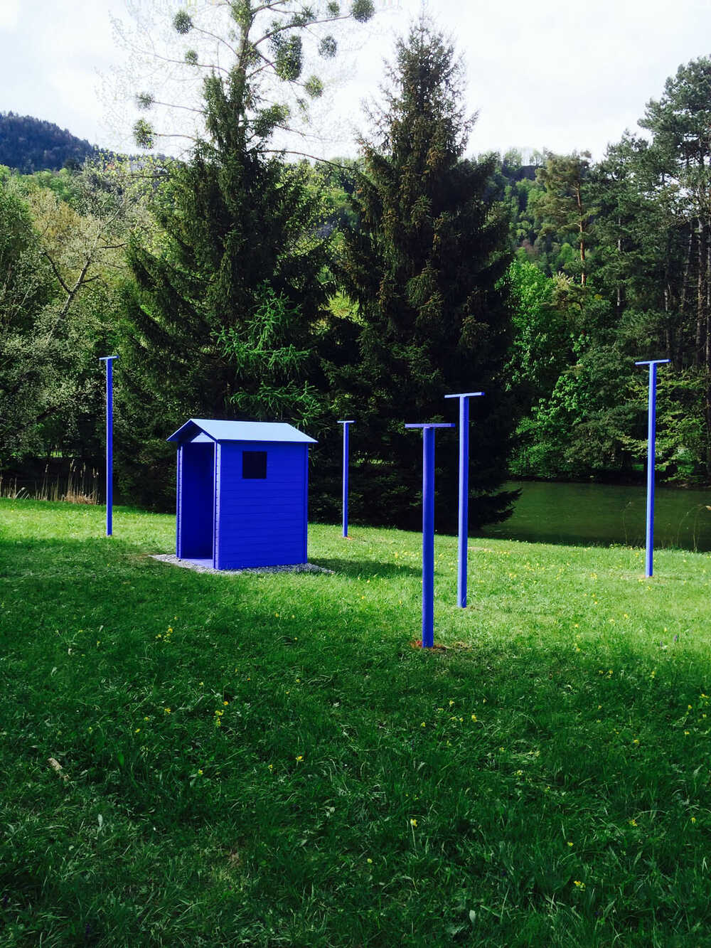 Die Vögel; geniessen auf den blauen Sitzstangen eine natürliche Weitsicht.