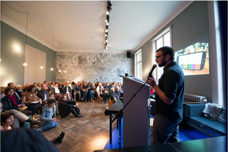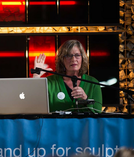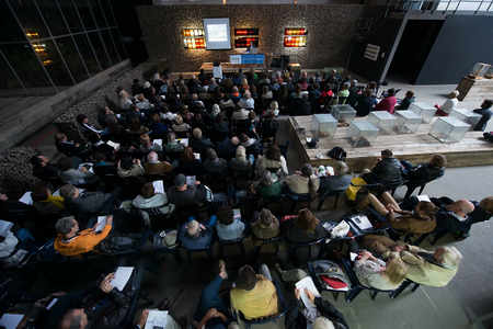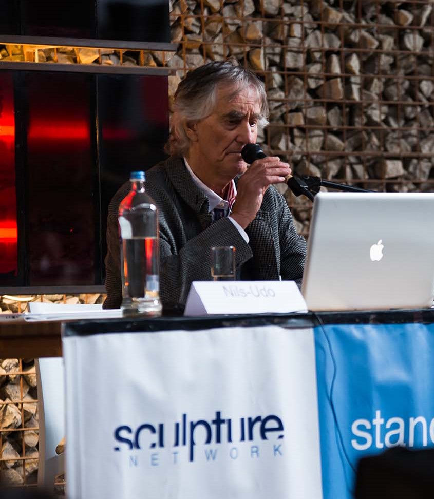 Subsequently, a curated selection of ten artist members of sculpture network talked about their art & nature in 90 second presentations: Iraida Cano (ES), Rainer Fest (DE), Ninette Koning (NL), Catrin Lüthi K (CH), Judith Mann (DE), Rob Olins (UK), Bert Schoeren (NL), Urs-P. Twellmann (CH), Linda Verkaaik (NL) und Lars Waldemar (DK). In the parallel showroom sculptors and institutions presented documentation of their work and projects and exchanged contacts.