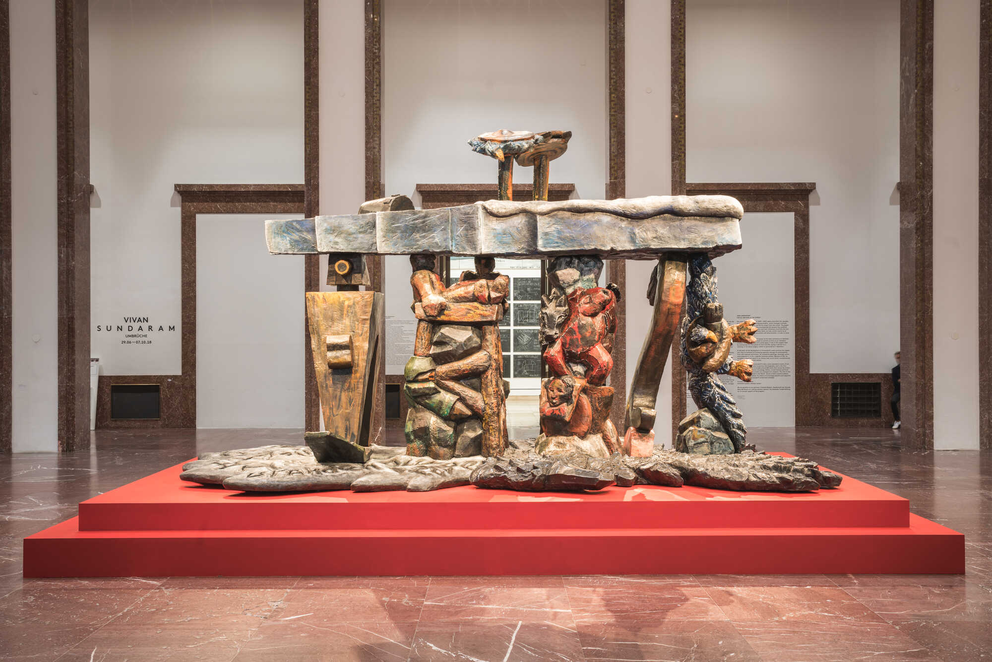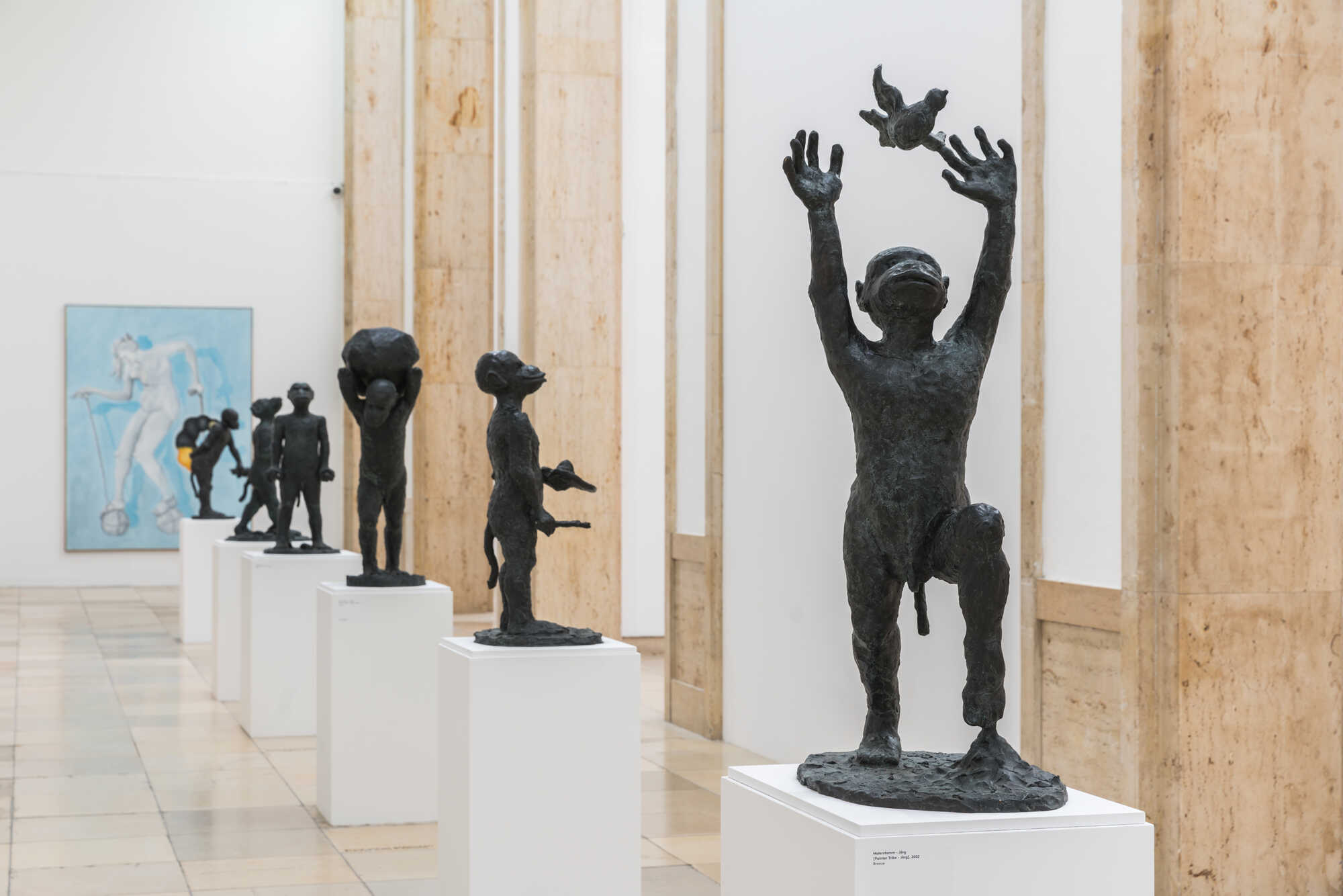 At 2.30 p.m. the free art mediator Stefan-Maria Mittendorf will give an exclusive tour of Immendorff's sculptures at the exhibition "Jörg Immendorff: For all beloved in the world" on the last day of the exhibition, starting in the middle hall with the large-format bronze sculpture "Naht (Brandenburger Tor - Weltfrage)" up to the smaller monkey sculptures from the 2000s.