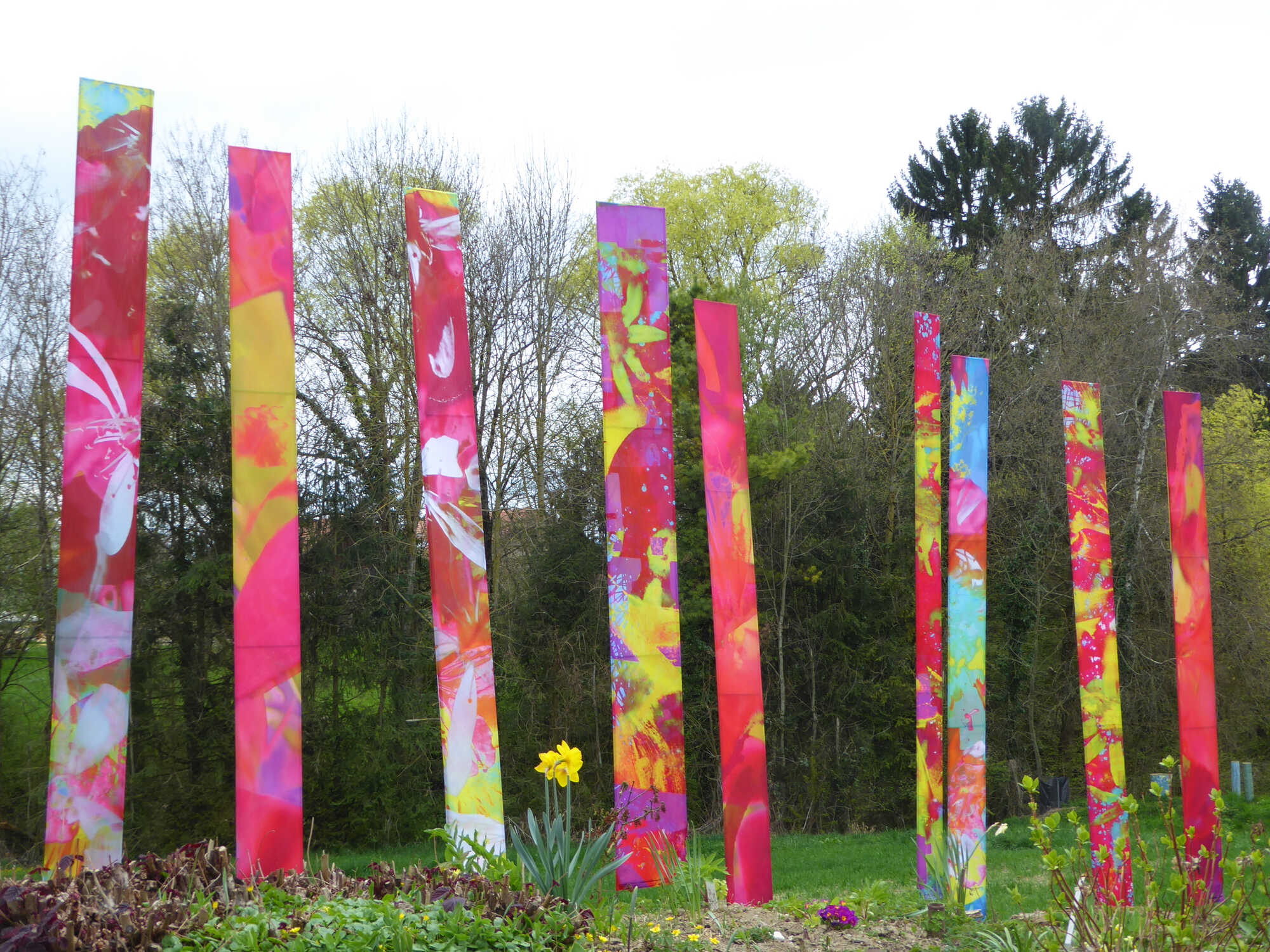 Kunst und Natur. Skulpturen und Paloxen mit Urban Gardening umgeben das Grundstück von Hoferundhofer. Ein neu entstandener Weg lässt den Dialog zwischen Kunst und Natur spüren.