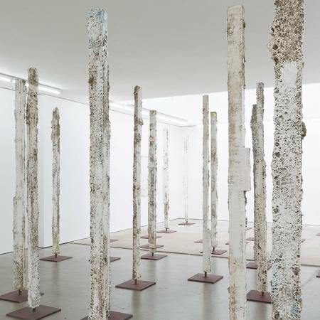 British artist Jodie Carey has created three striking site-responsive installations for London’s Foundling Museum. A sea of delicate, ceramic fragments produced from fired clay-covered fabric swatches covers the gallery floor. Upstairs two monumental works made from plaster and bronze cast in the earth are set amongst the historic Collection. On display for the first time, these poignant works encourage visitors to reflect on the elemental nature of the Foundling Hospital story – of love, loss and survival.