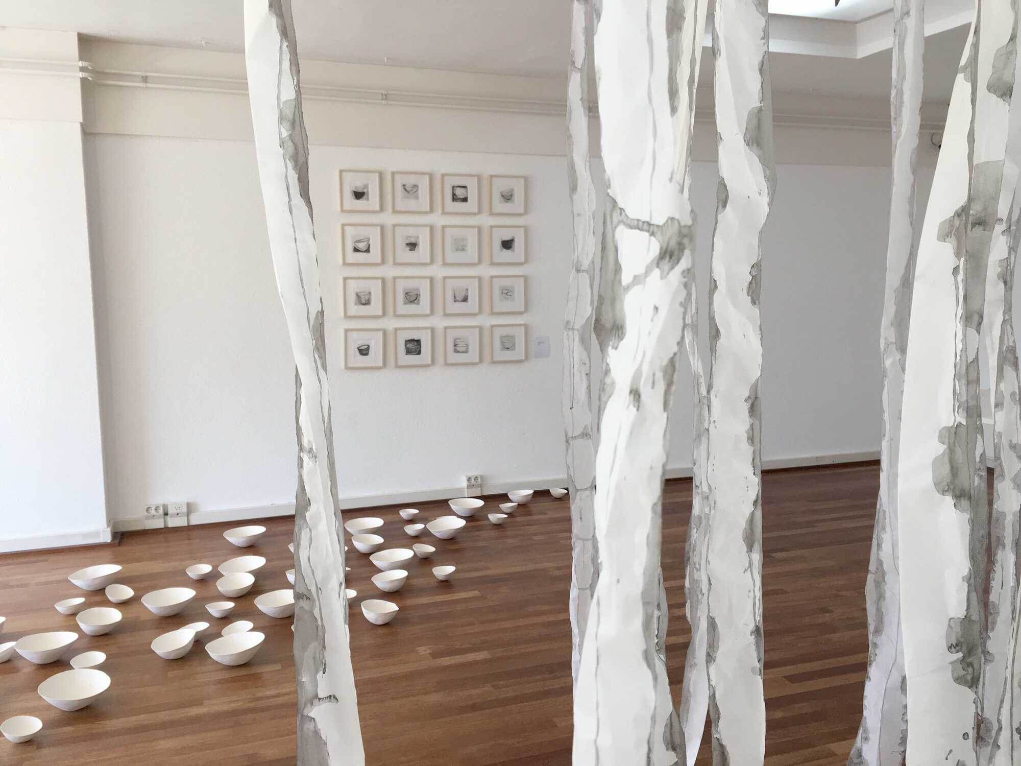 Aurelia shows new and existing work during this exhibition. New work in the form of an installation that she has developed in recent weeks. Previous work in the form of a film made by Anne-Marie van den Thillart of the installation of Aurelia in the Gruyter factories, Den Bosch with the title 'a sad history or is it futurism'. An art project at the time in collaboration with Hans d'Achard and Krijn Hendriksen. In addition, Aurelia lets a swarm of ceramic bowls cross the gallery.