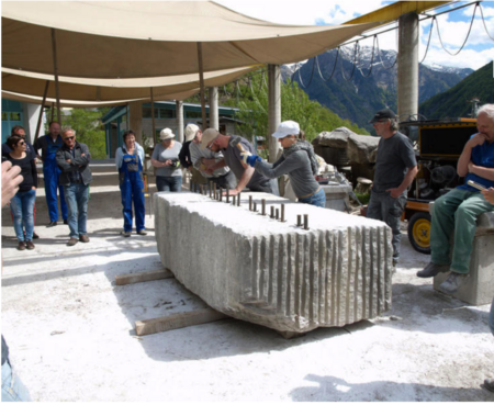 In Theoriestunden erfahren Sie mehr zu Entstehung, Abbau und der manuellen Verarbeitung von Naturstein. Dazu erhalten Sie schriftliche Unterlagen. Beim Besuch des Marmorsteinbruchs am Fuß des Pizzo Castello können Sie Spuren der historischen Entwicklung der Natursteingewinnung entdecken und beobachten wie heute mit modernster Technik im Untertag-Abbau exklusiver Cristallina Marmor gewonnen wird.